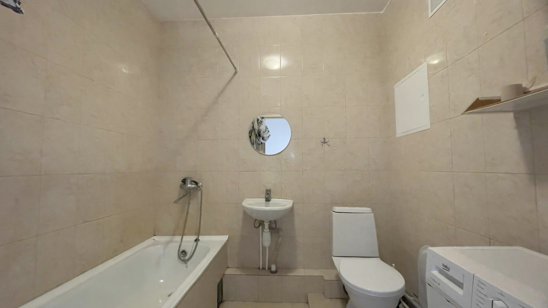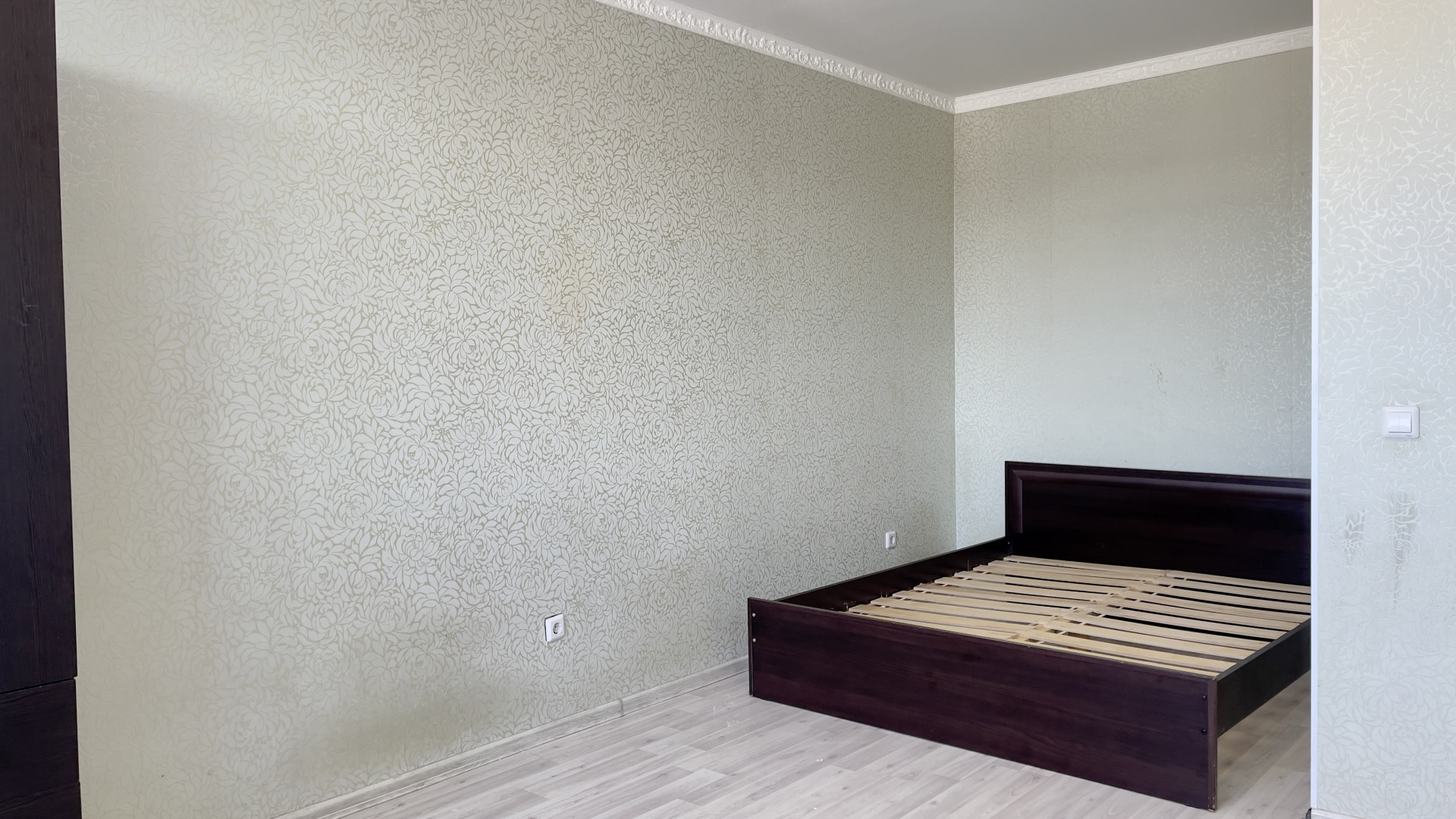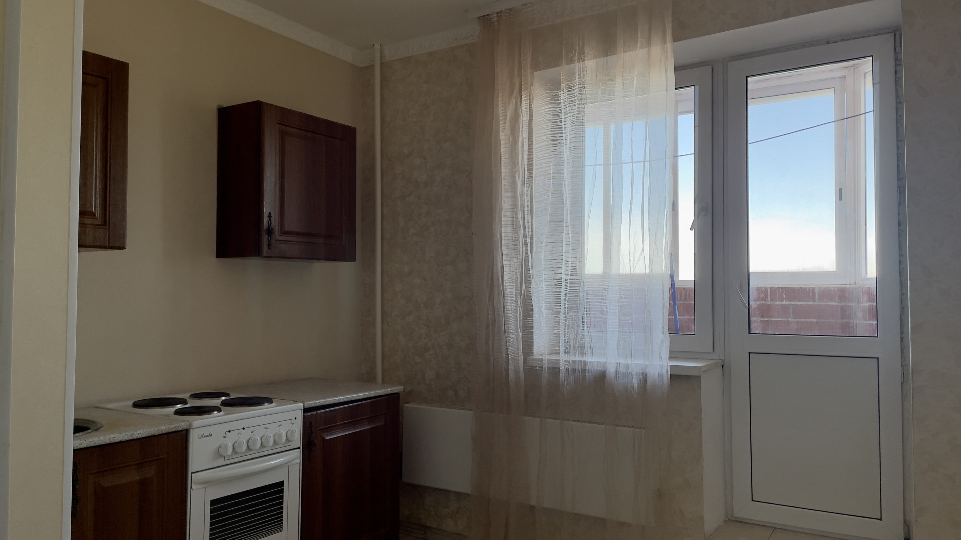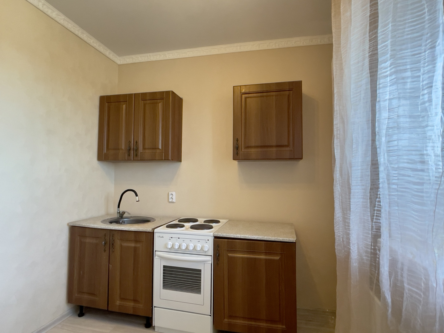 В квартире выполнен ремонт, на полу светлый ламинат, на стенах обои. Правильной формы кухня 8 кв.м, с выходом на балкон, оборудована встроенной мебелью и необходимой техникой. Совмещенный санузел выложен плиткой от пола до потолка.