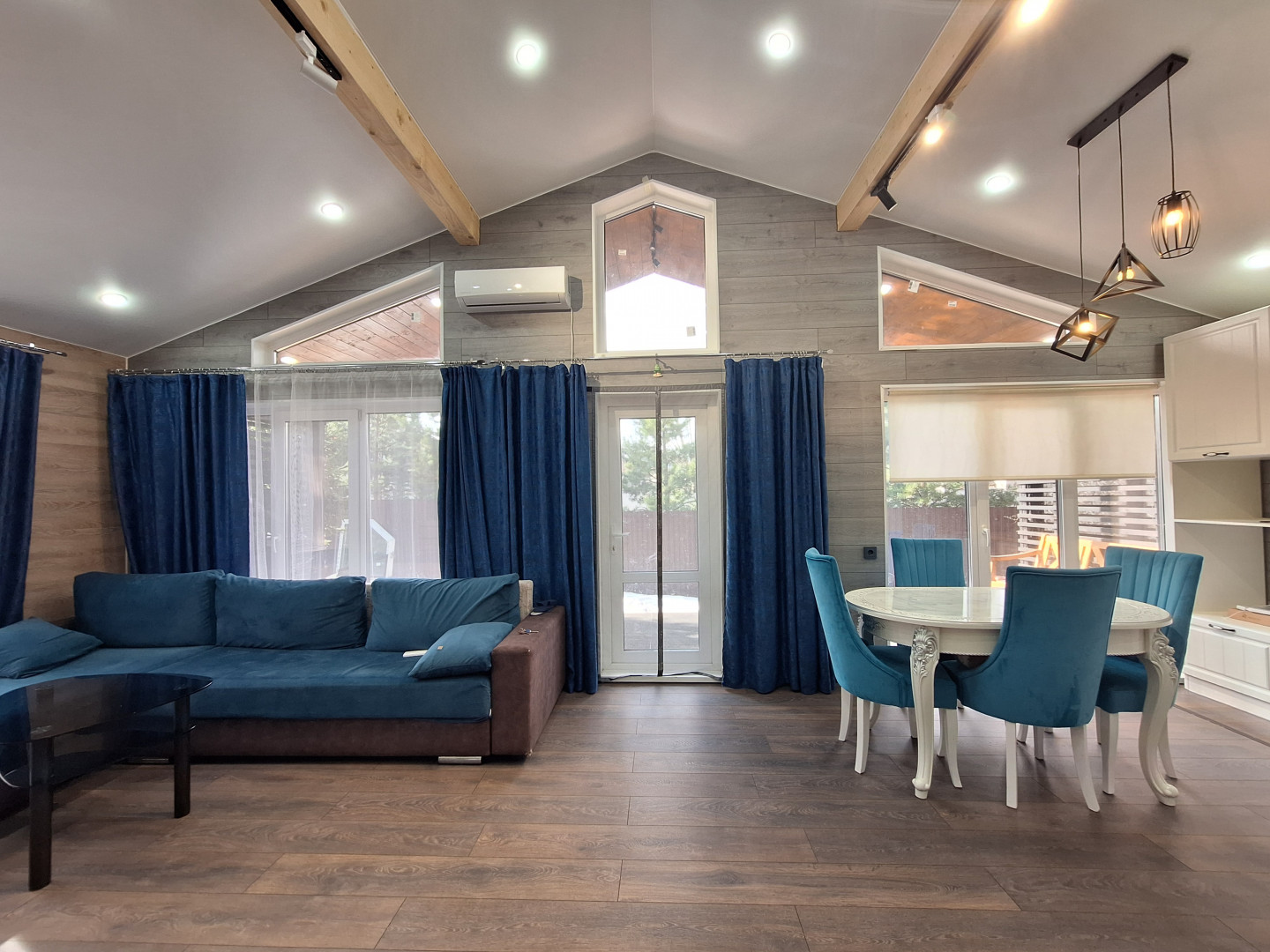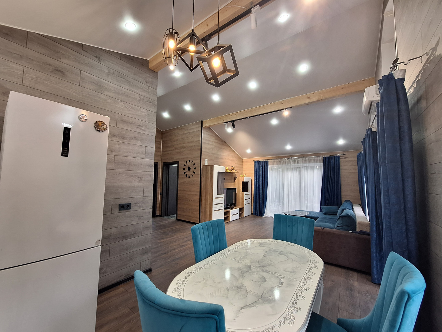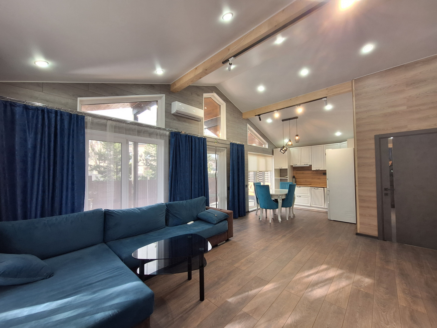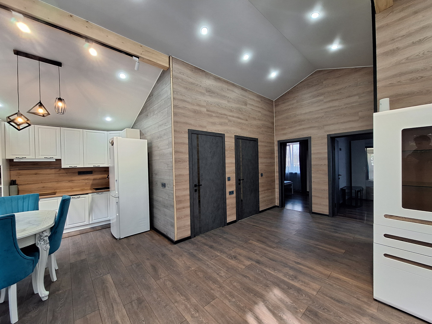 Два совмещённых санузла, две спальни, большая кухня-гостиная .