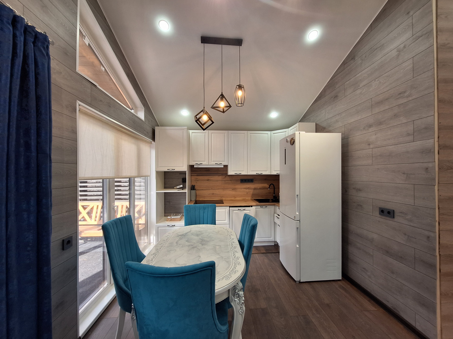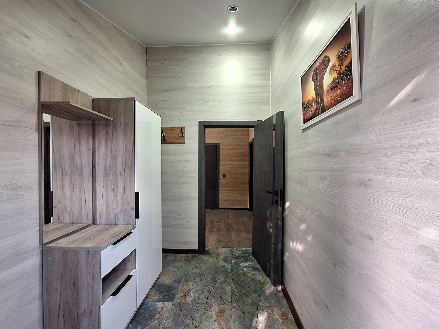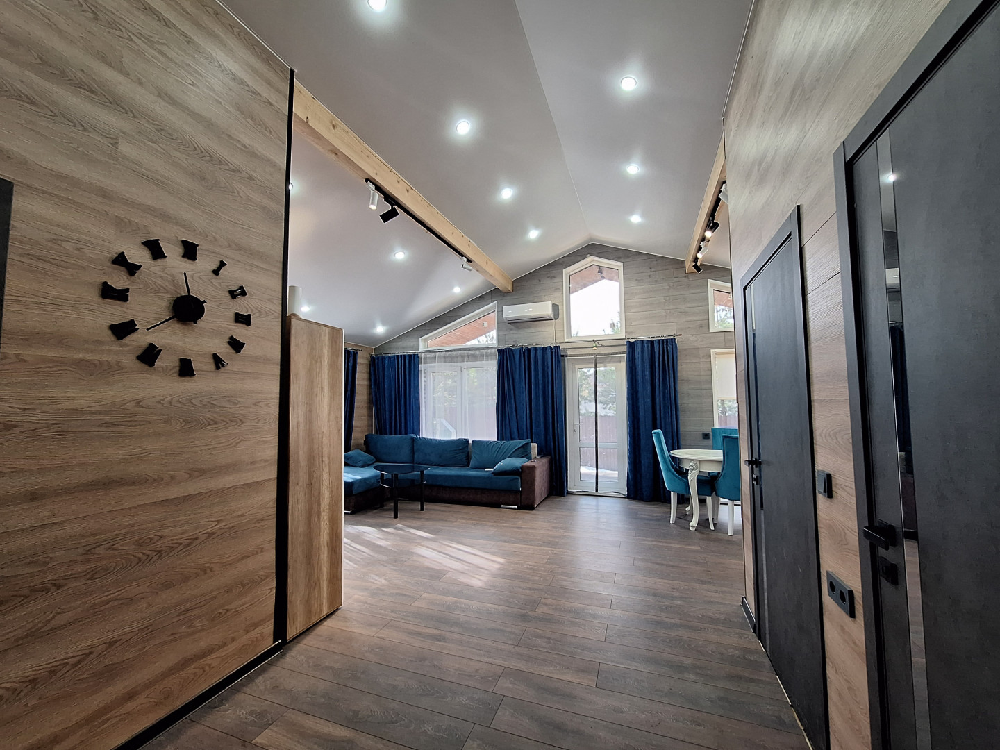 Два совмещённых санузла, две спальни, большая кухня-гостиная .