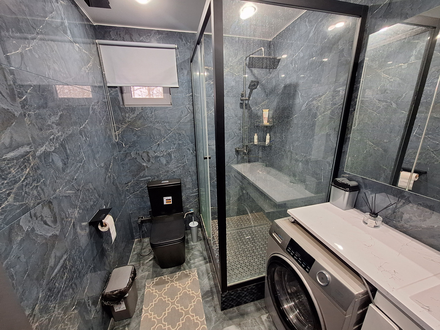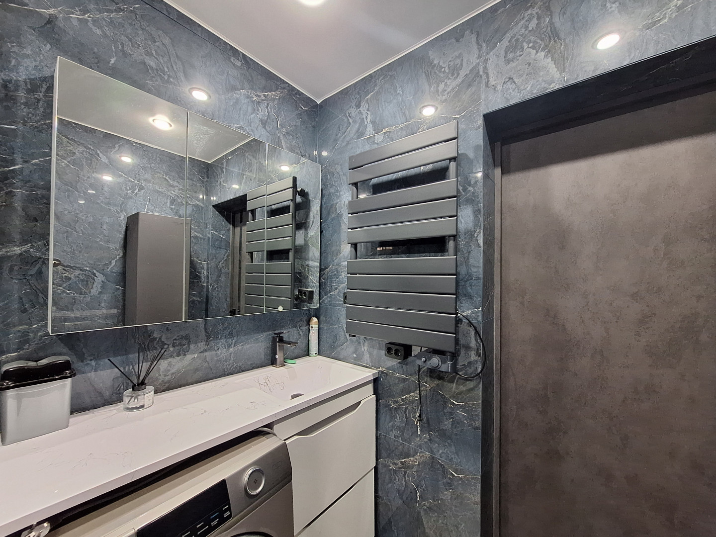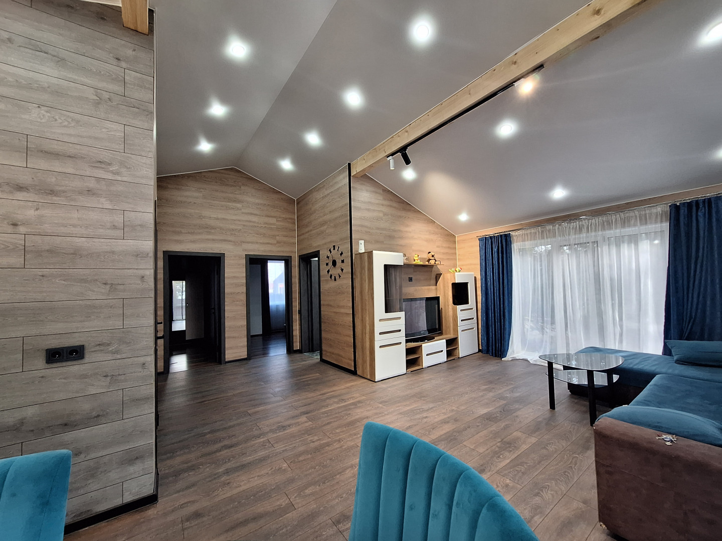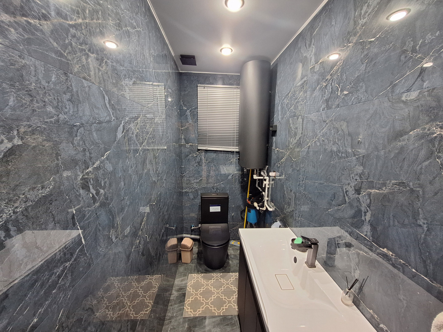 Два совмещённых санузла, две спальни, большая кухня-гостиная .