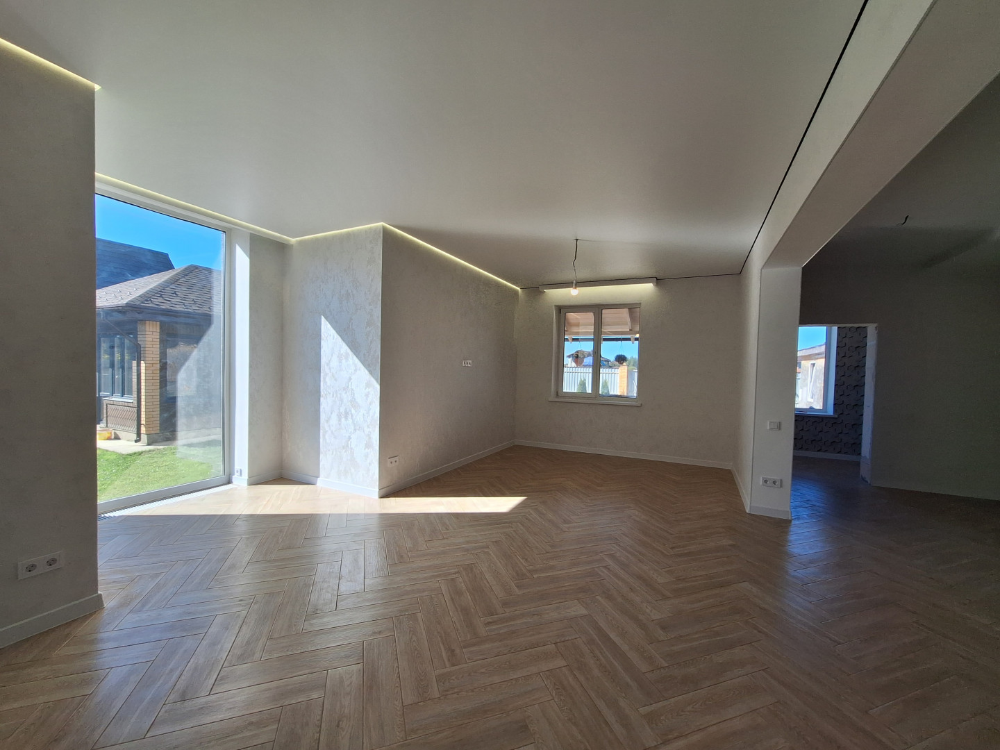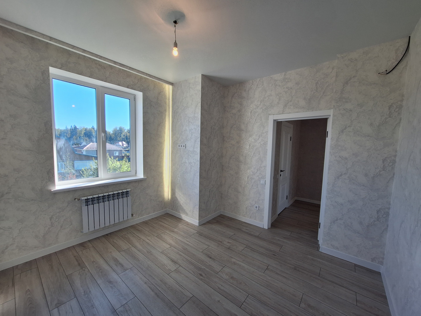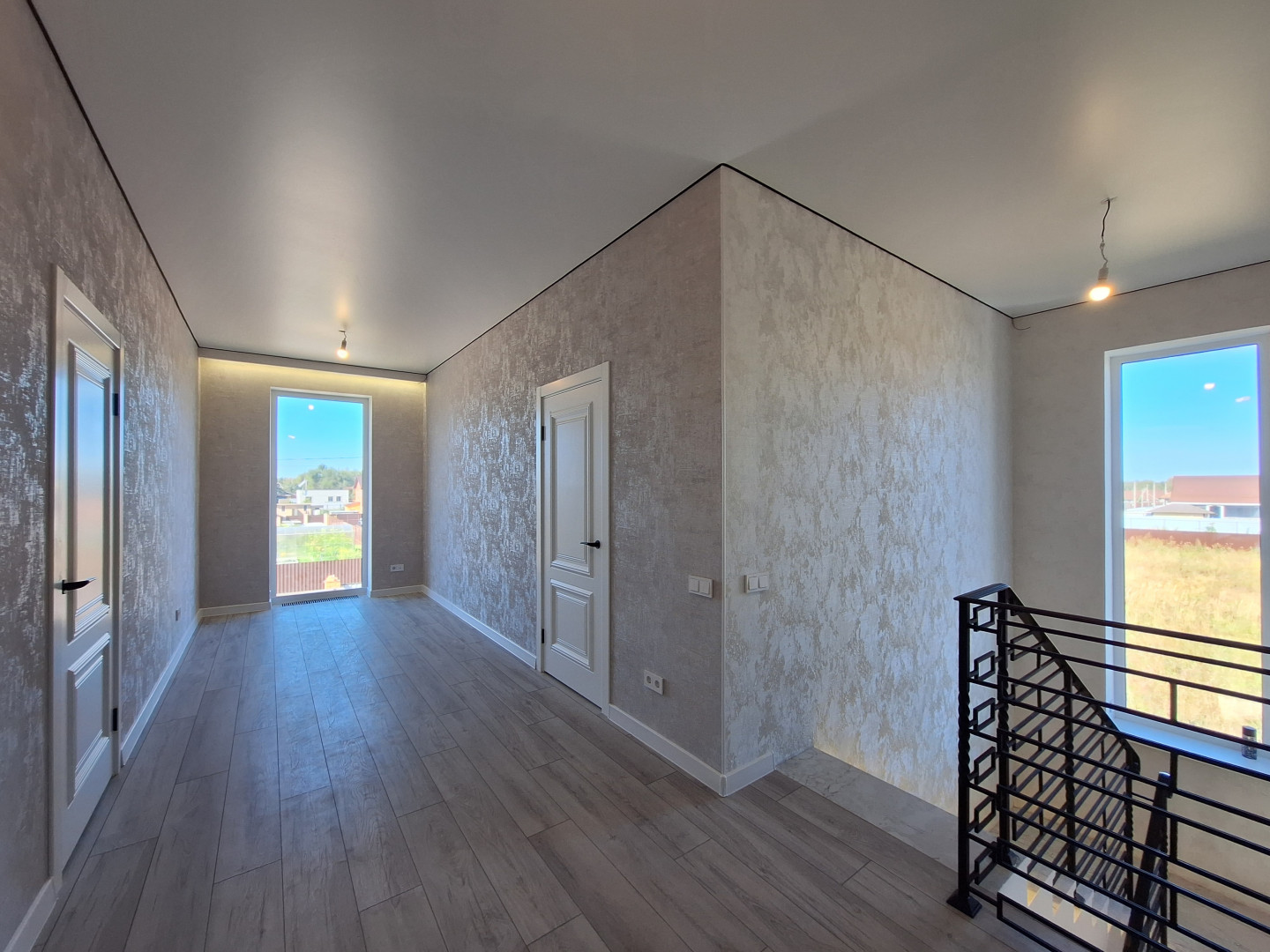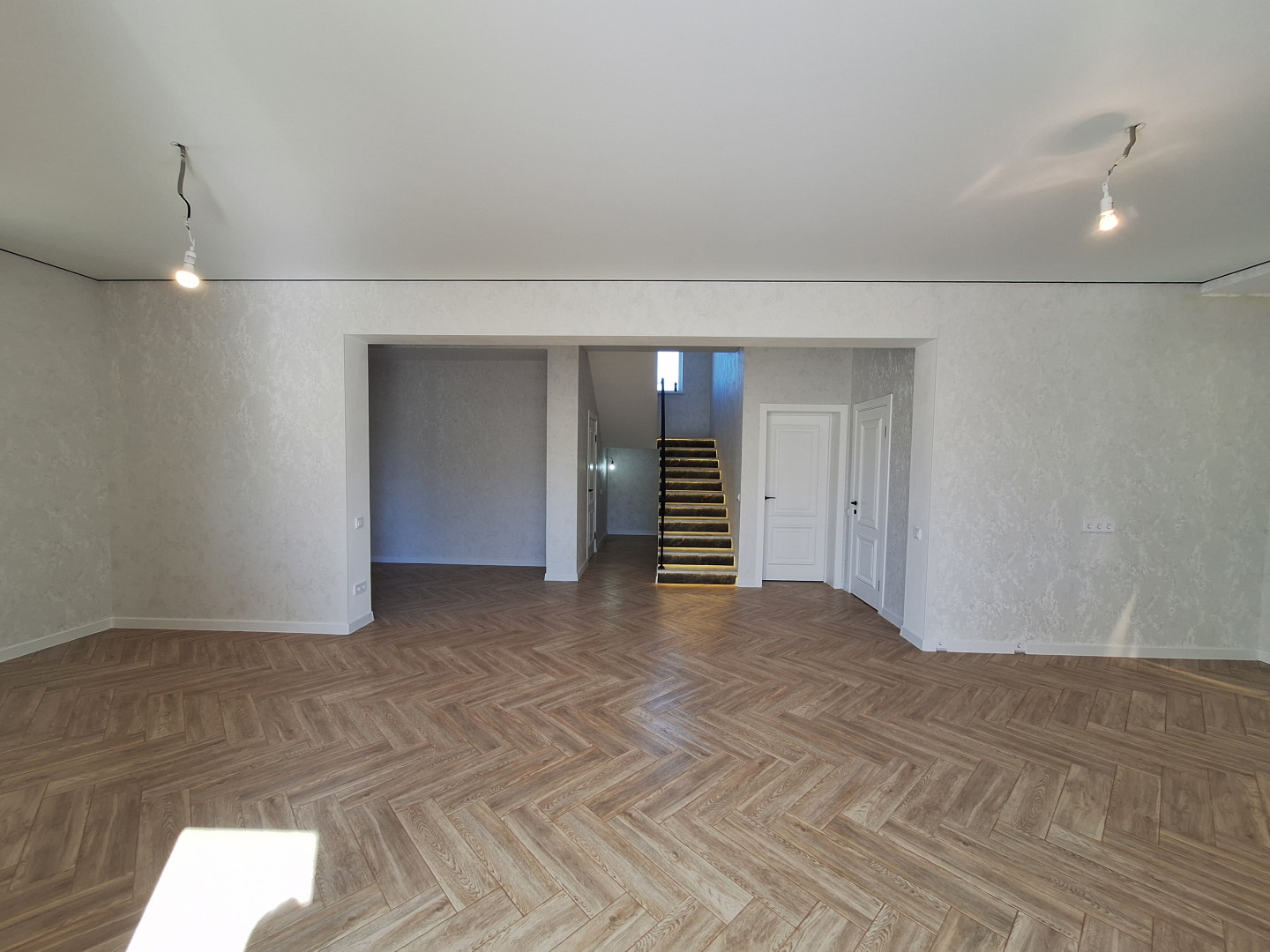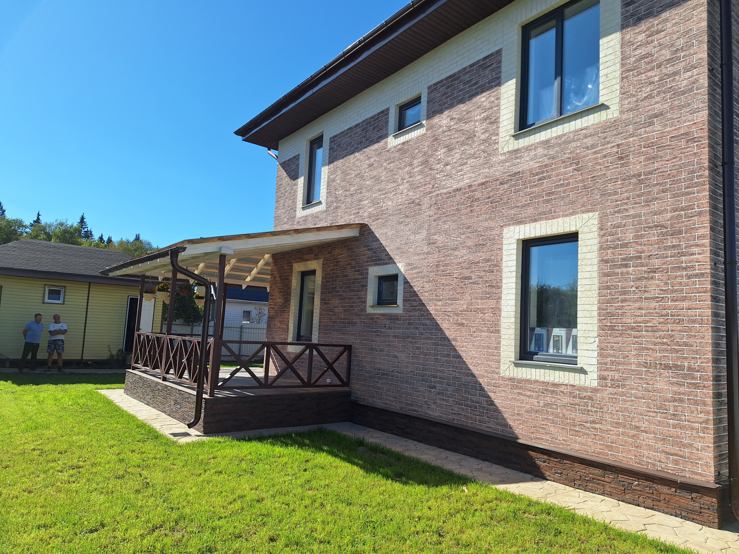 Дом построен из качественных материалов под ключ (без мебели) с отделкой и сантехникой, лестница - железо-бетон, конвекторы, розетки, выключатели, на полу ламинат и плитка.