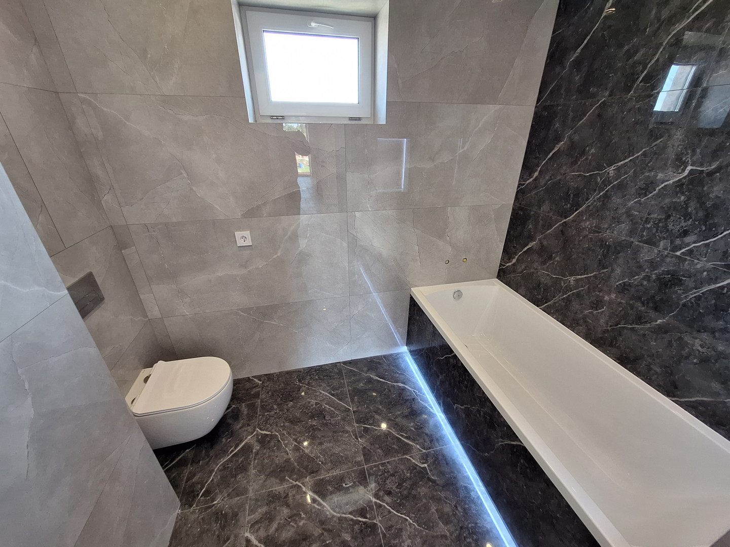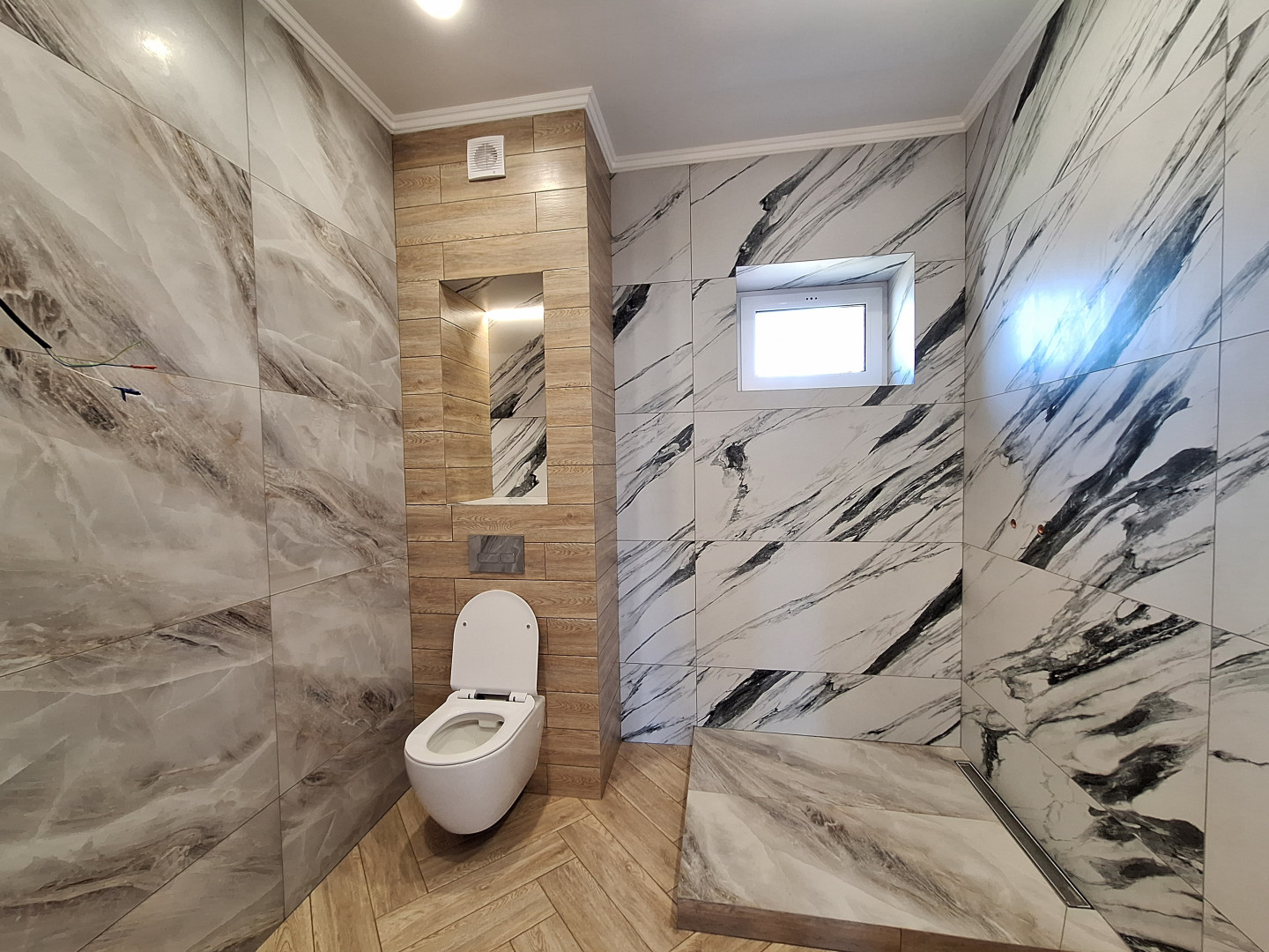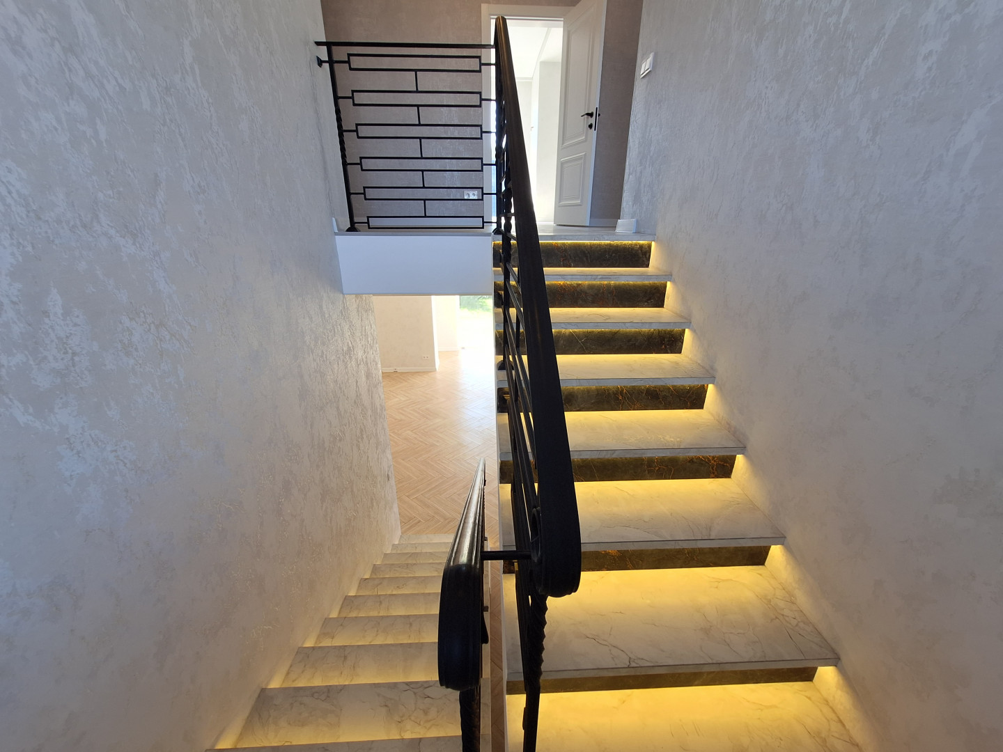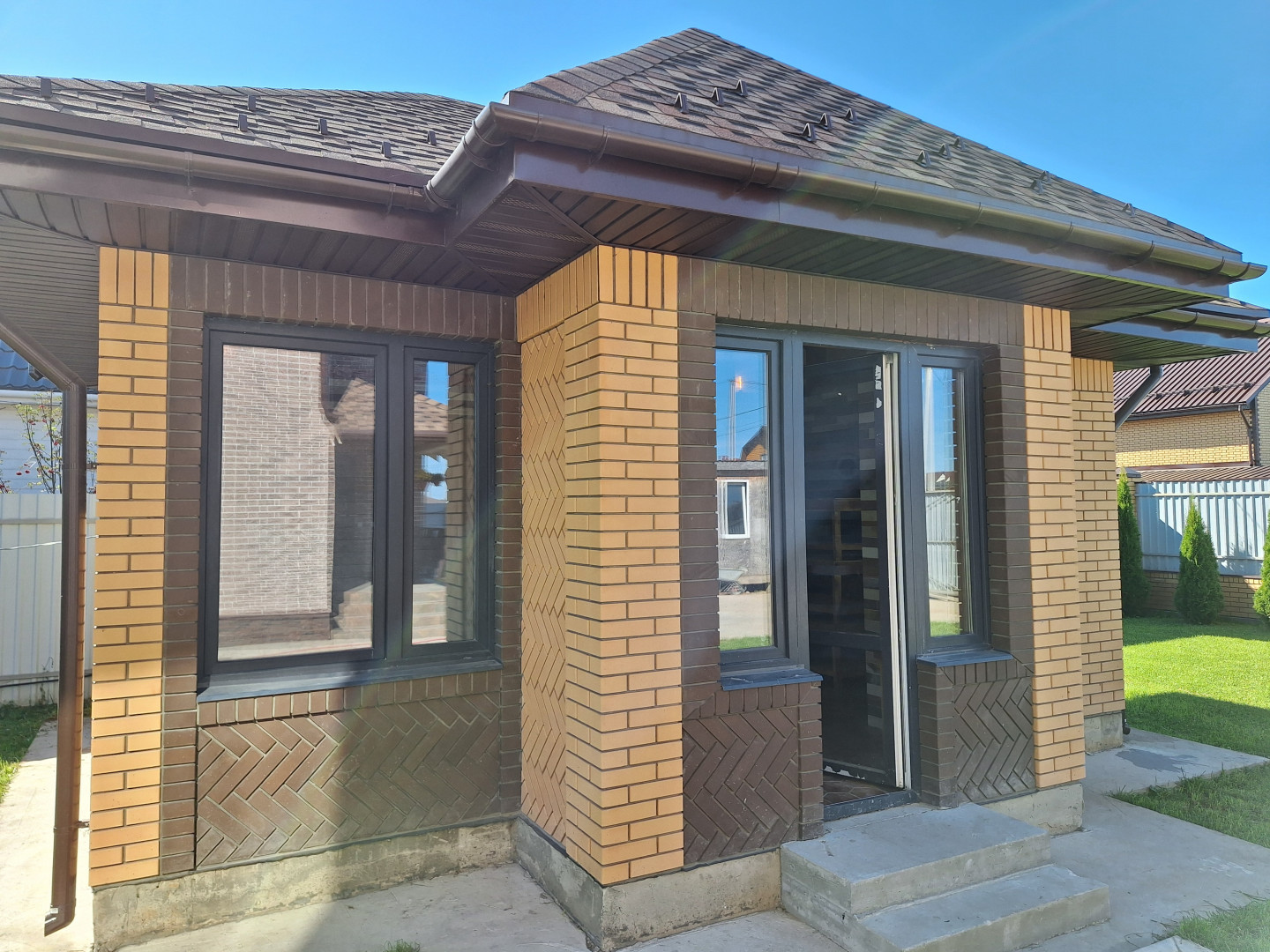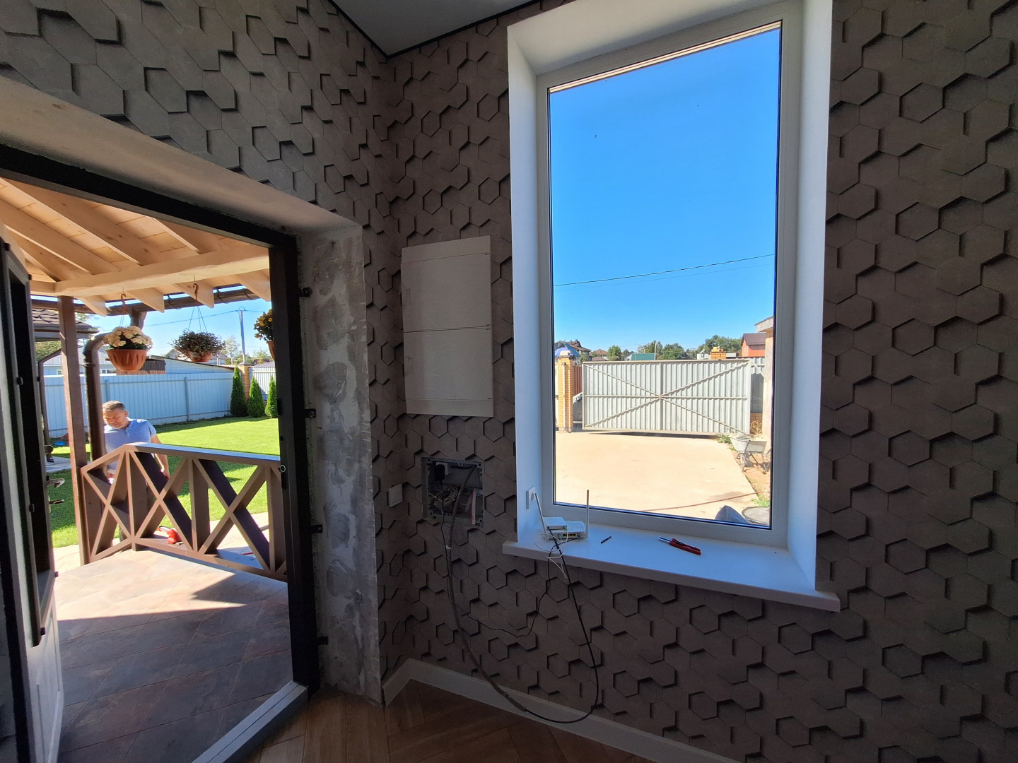 Дом построен из качественных материалов под ключ (без мебели) с отделкой и сантехникой, лестница - железо-бетон, конвекторы, розетки, выключатели, на полу ламинат и плитка.