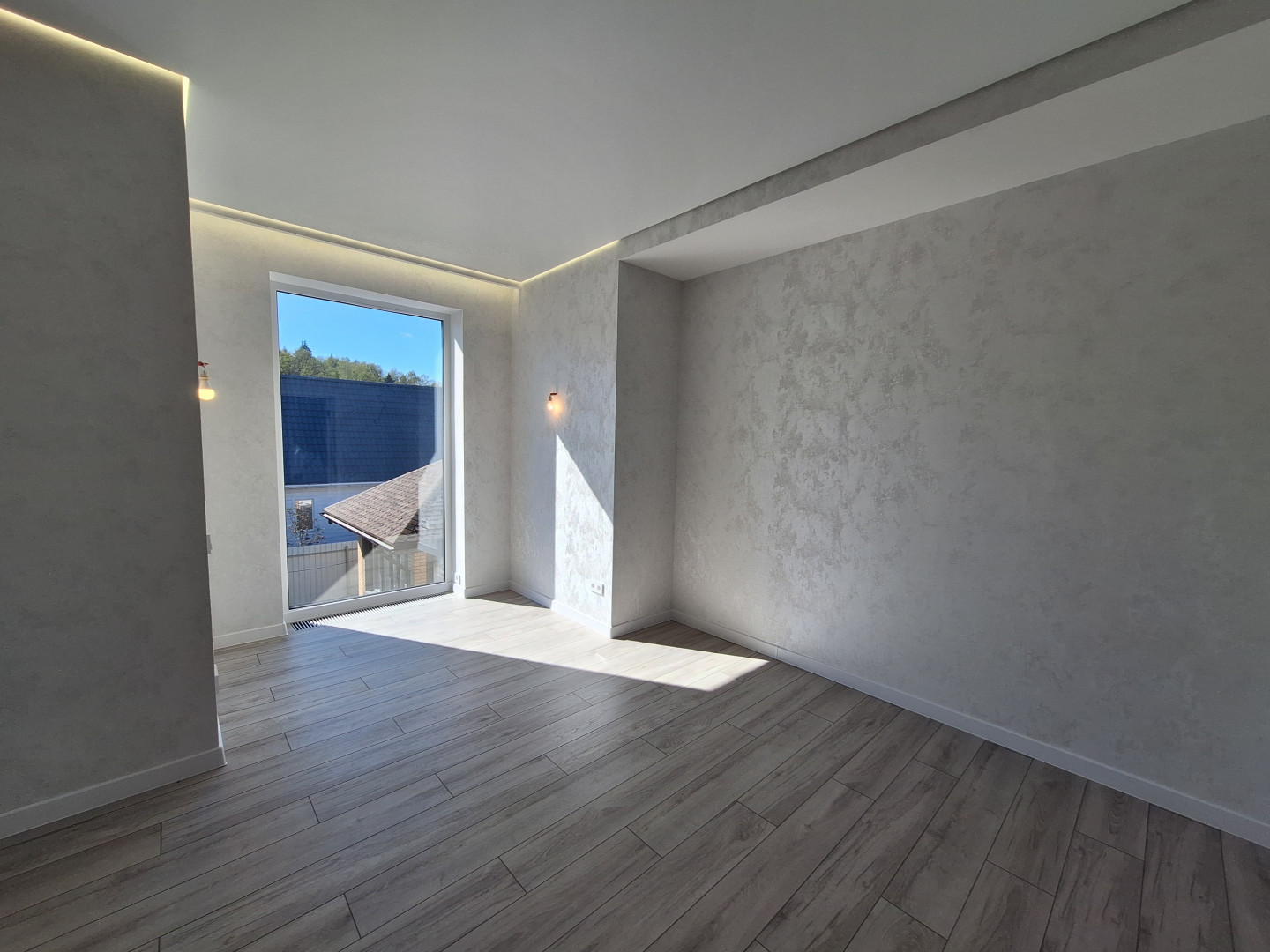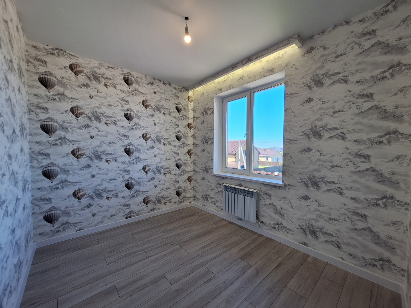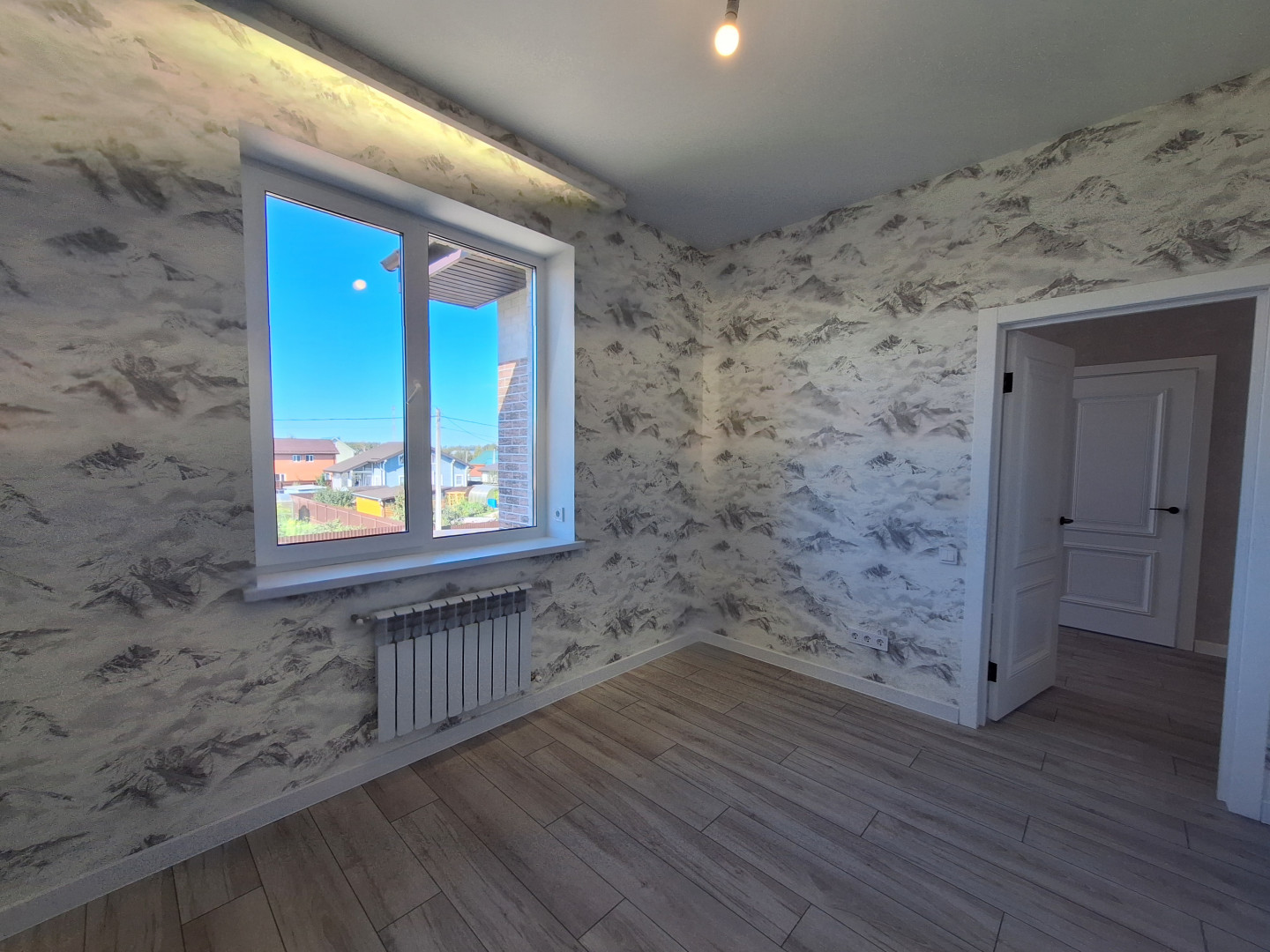 Второй этаж: четыре спальни, в одной из которых панорамное окно и тёплые полы, санузел.
