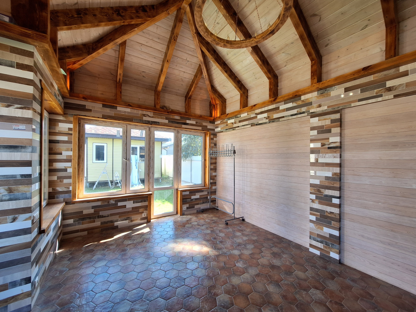 На участке капитальная закрытая беседка - произведение Искусства! В беседке электричество, вода, канализация, тёплые водяные полы.