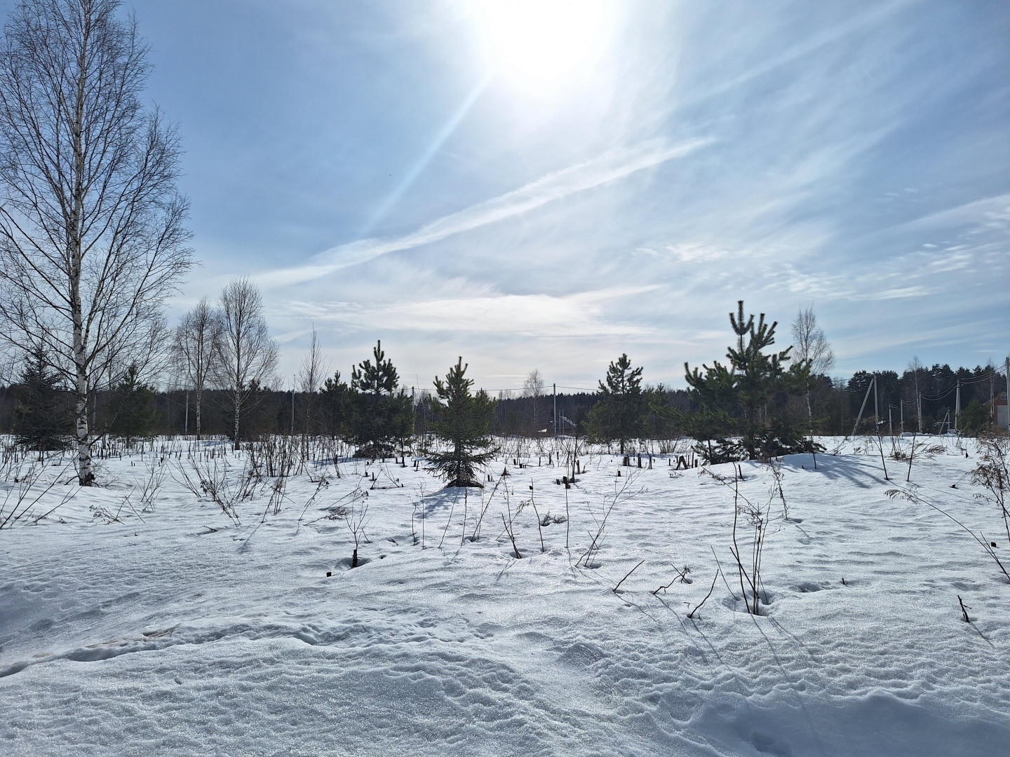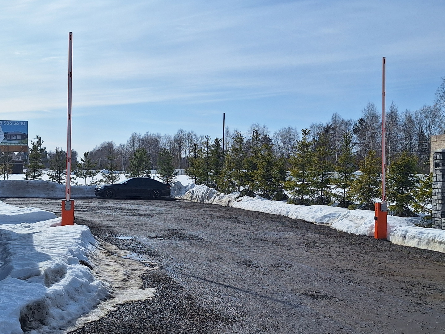 Участок сухой и ровный, удачной прямоугольной формы. Находится в середине посёлка, где идёт активная застройка, некоторые собственники уже построились и живут постоянно. Въезд в посёлок через шлагбaум.