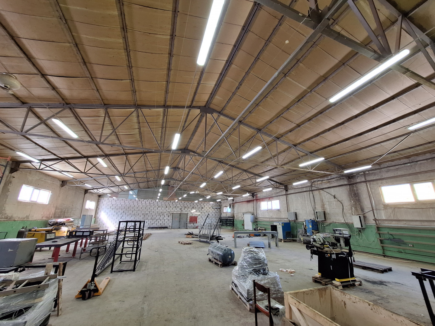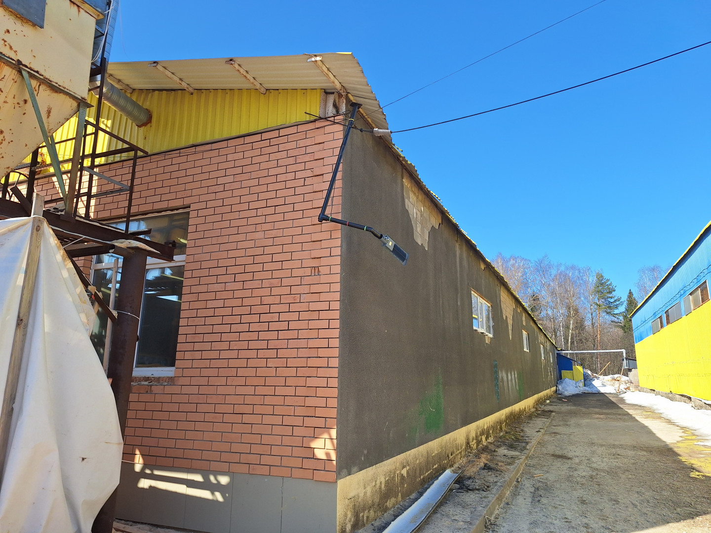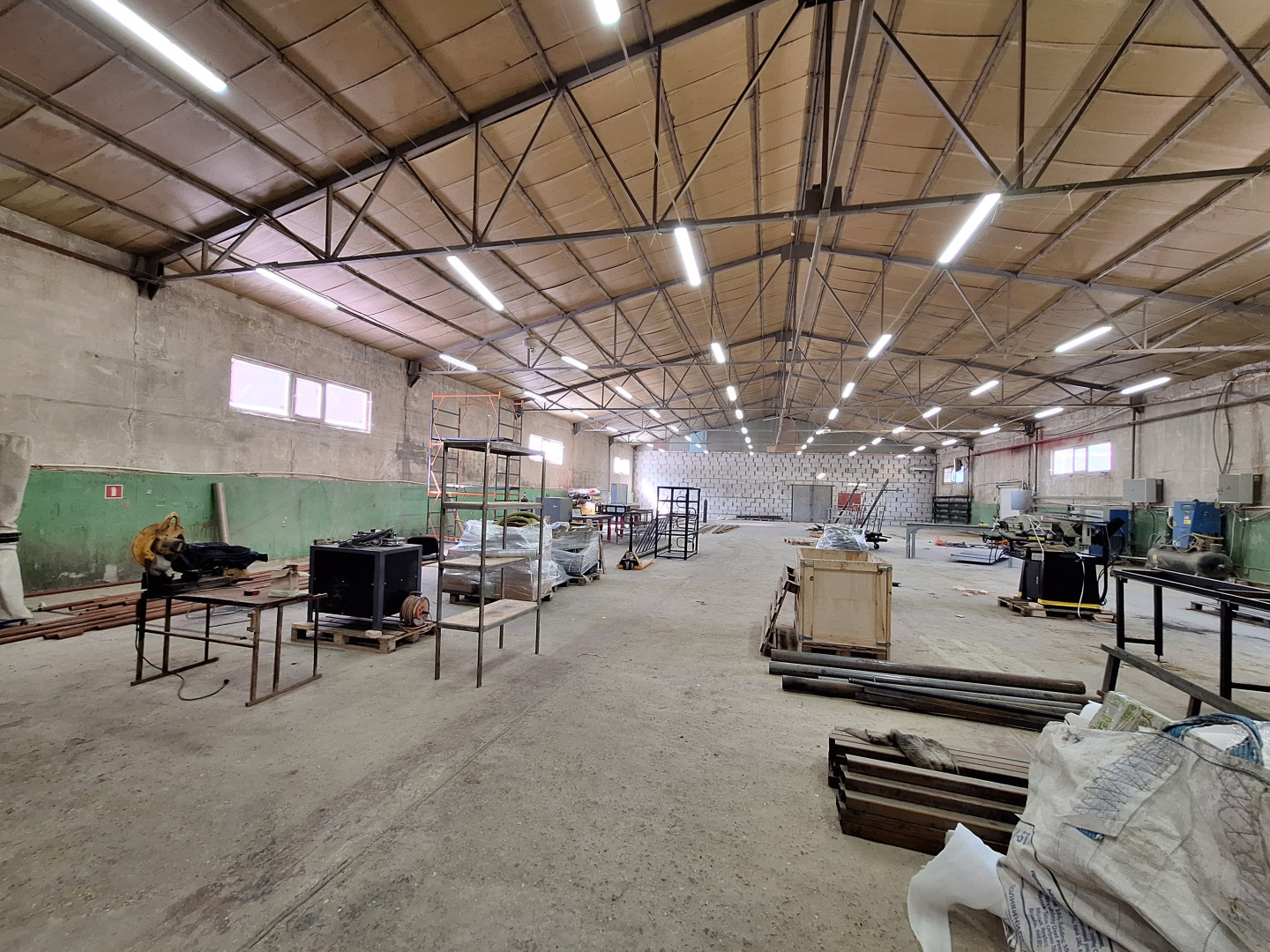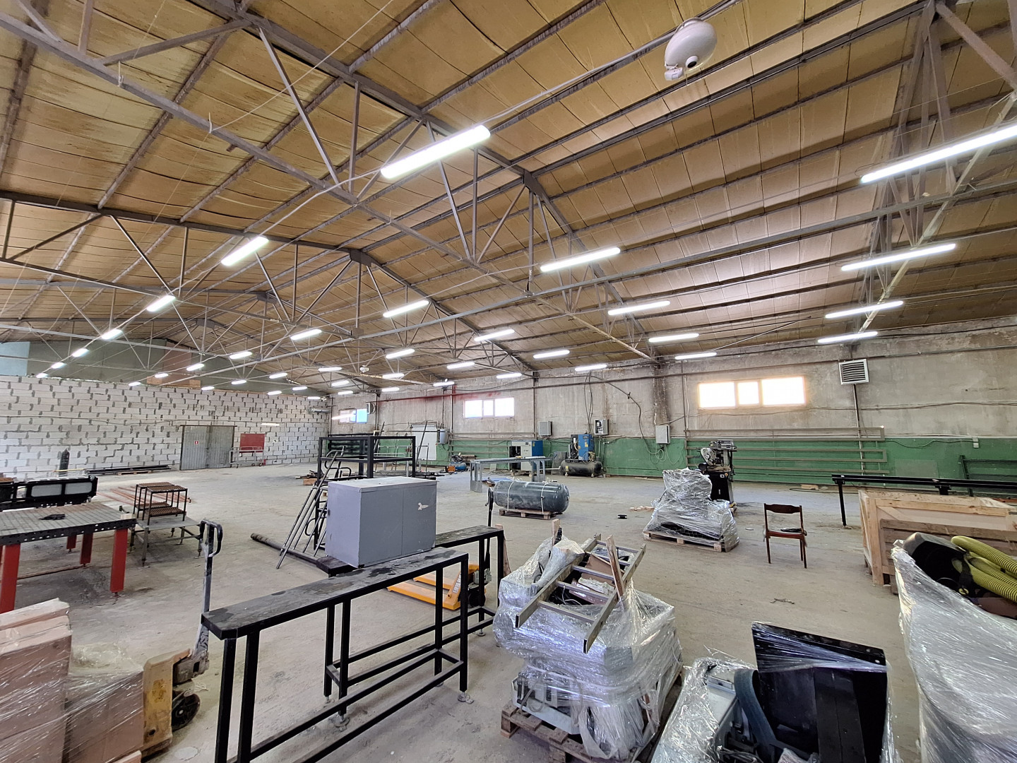 Здание отдельно стоящее, разделено на два помещения: 720 кв. м. и 480 кв. м., включая 115 кв. м. - офис, санузел, душевая.