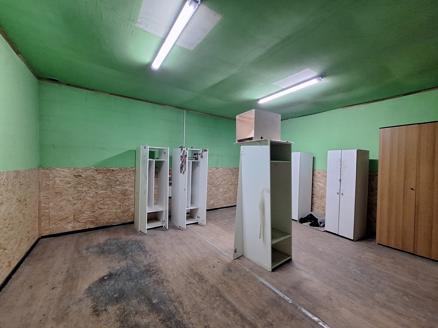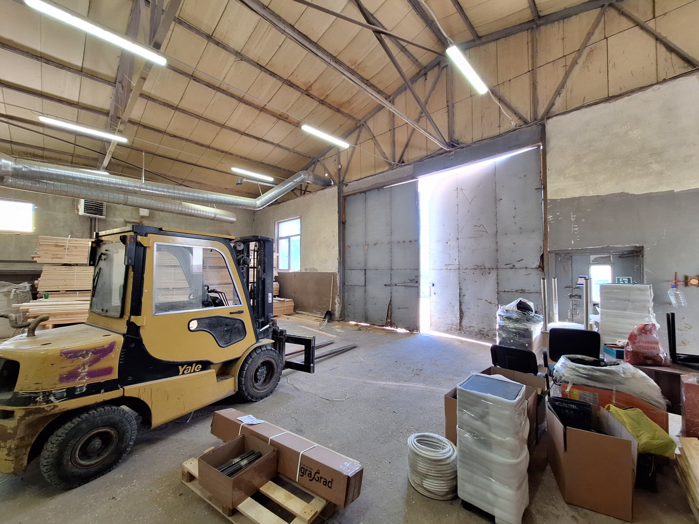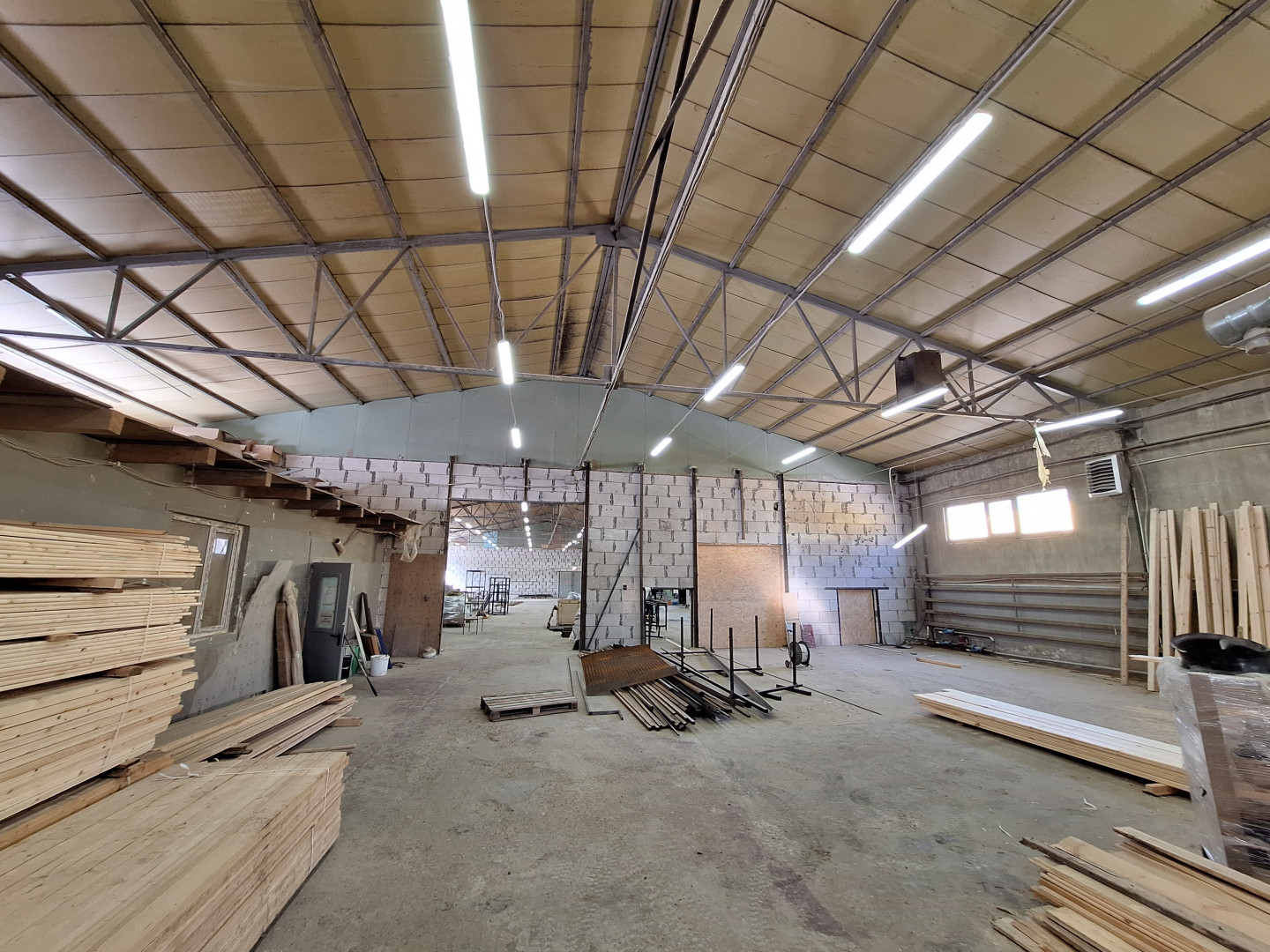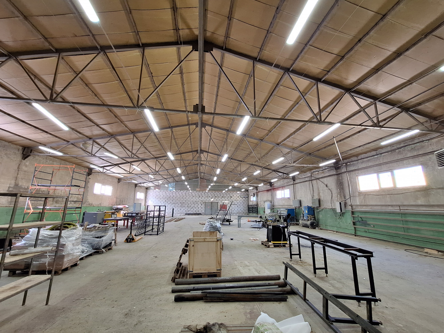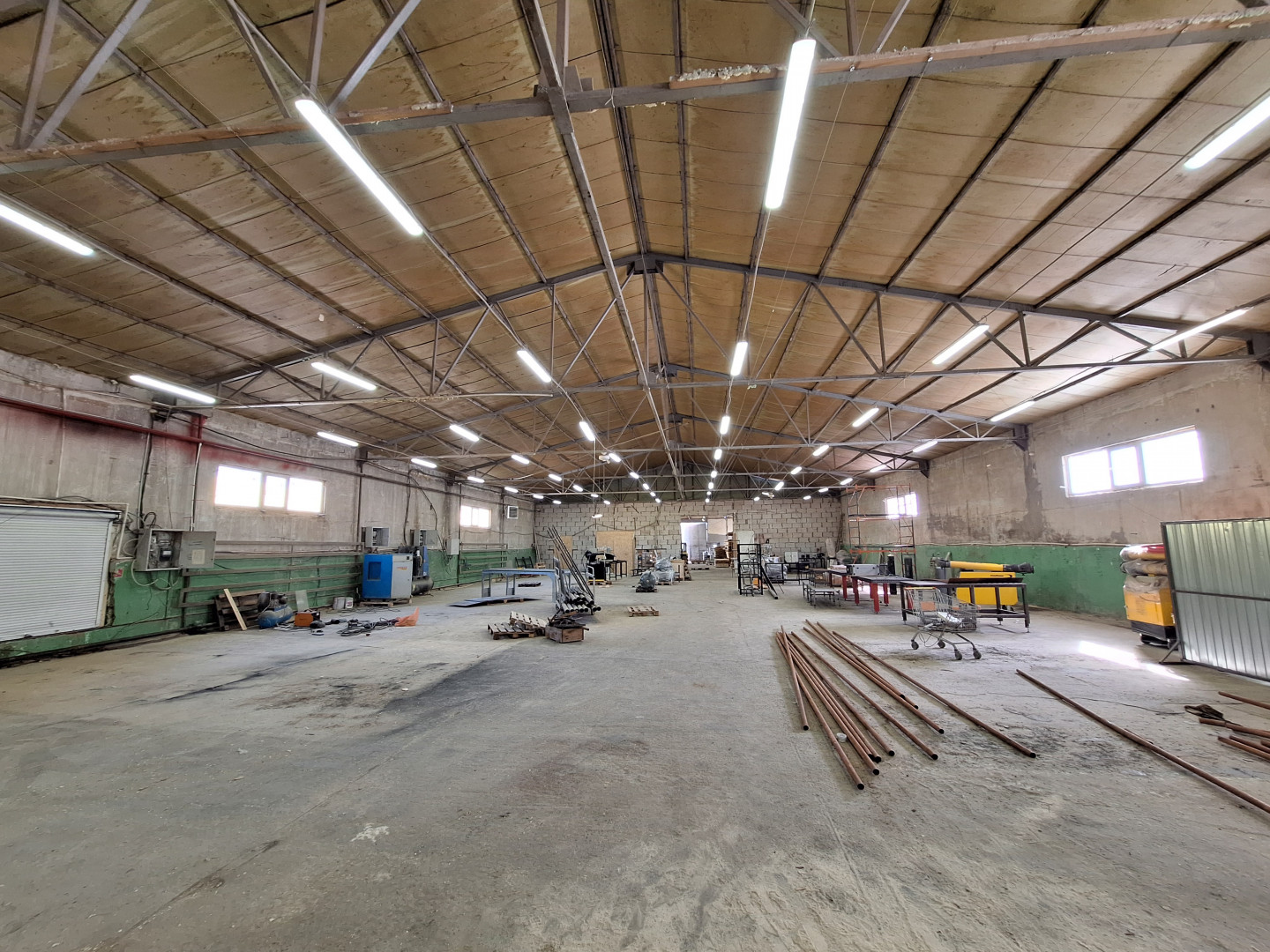 Здание отдельно стоящее, разделено на два помещения: 720 кв. м. и 480 кв. м., включая 115 кв. м. - офис, санузел, душевая.