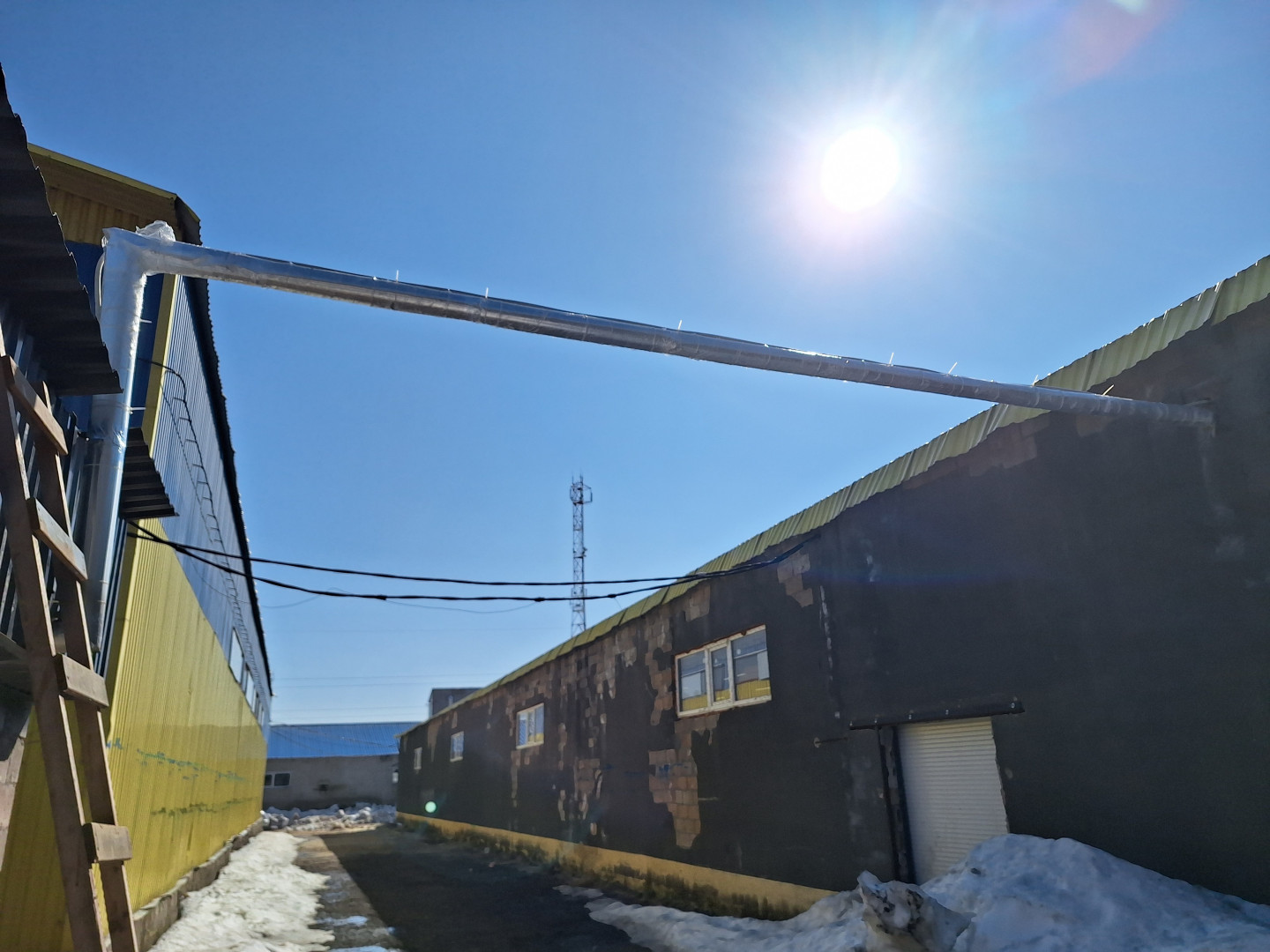 Внутренняя территория пром.зоны позволяет свободно принимать грузовой длинномерный транспорт. Въезд на территорию через шлагбаум с круглосуточной охраной и дополнительные ворота.