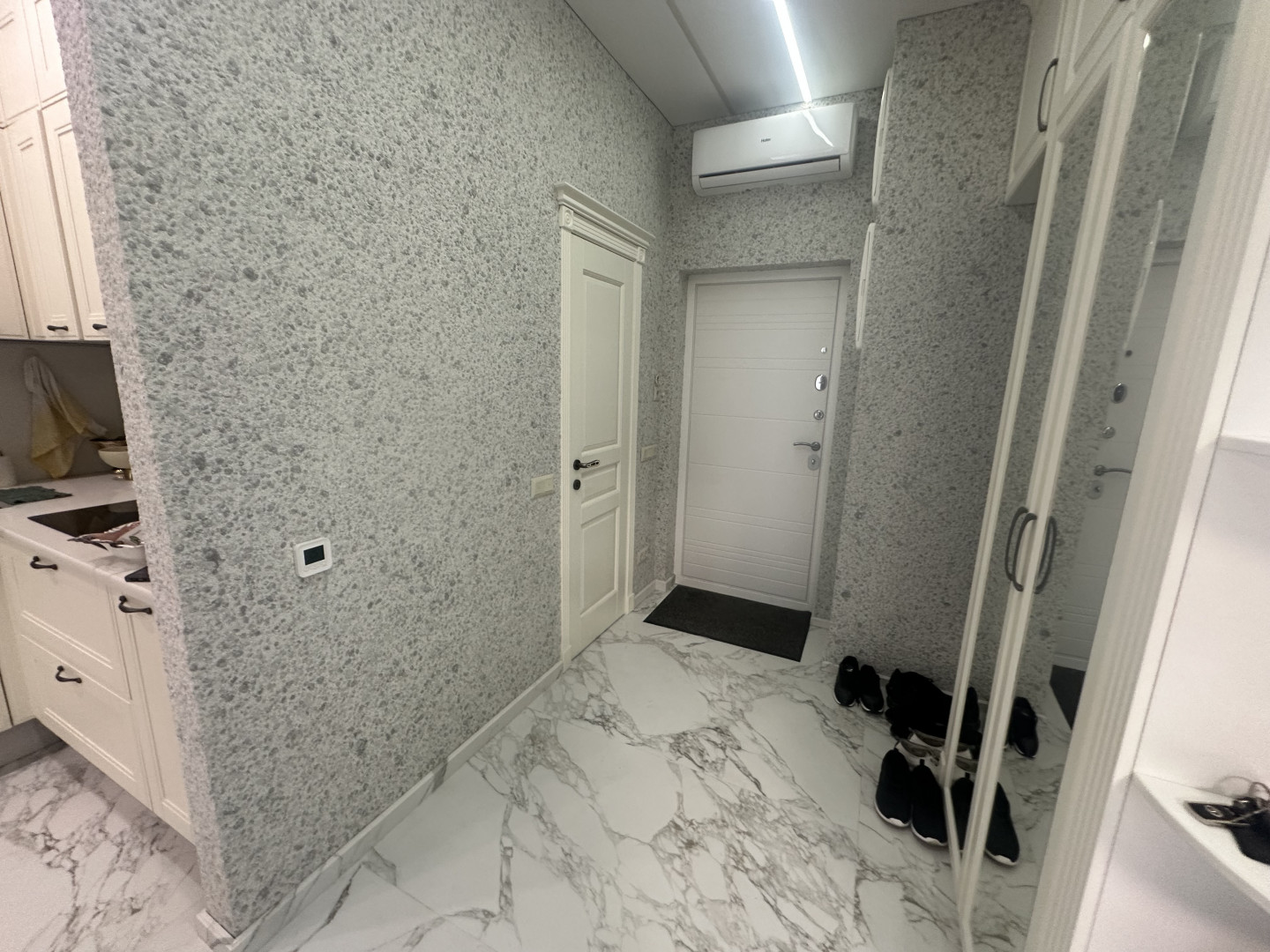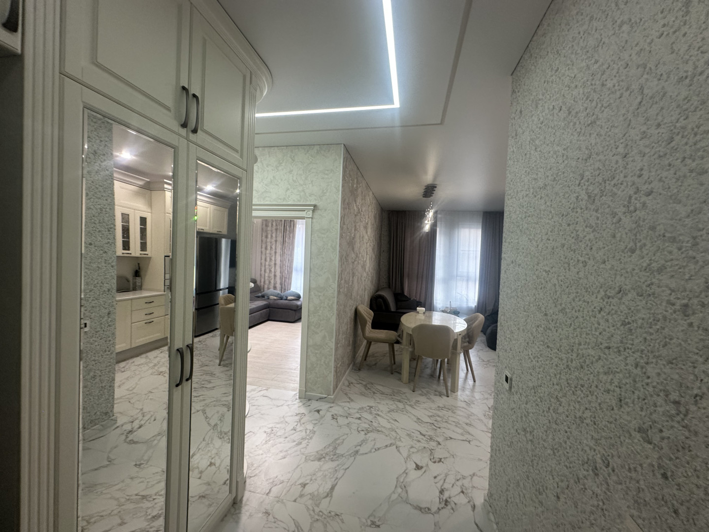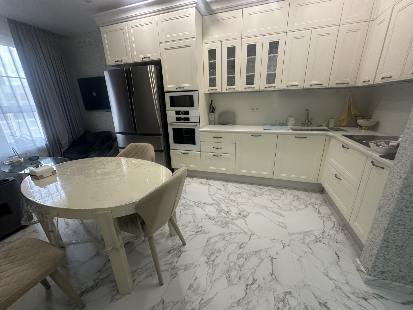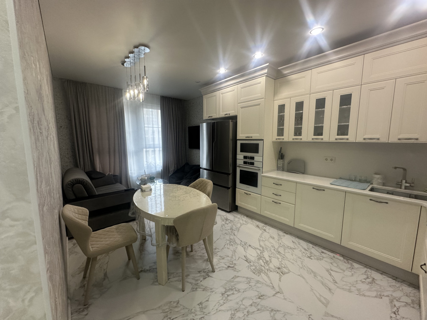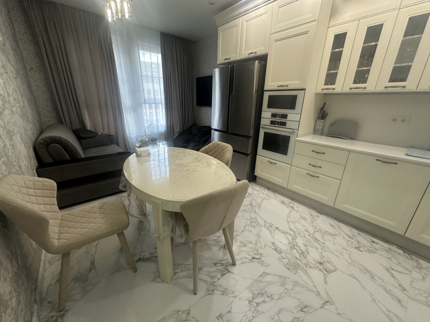 В квартире выполнен качественный ремонт: разведены теплые полы, установлена брендовая сантехника и бытовая техника, подоконники каменные и тд…