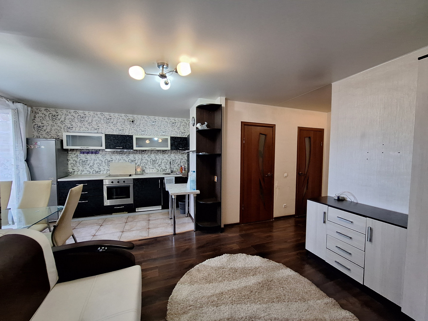 Общая площадь - 44,1 м.кв., кухня-гостиная 21 м.кв., спальня 11м.кв.,
