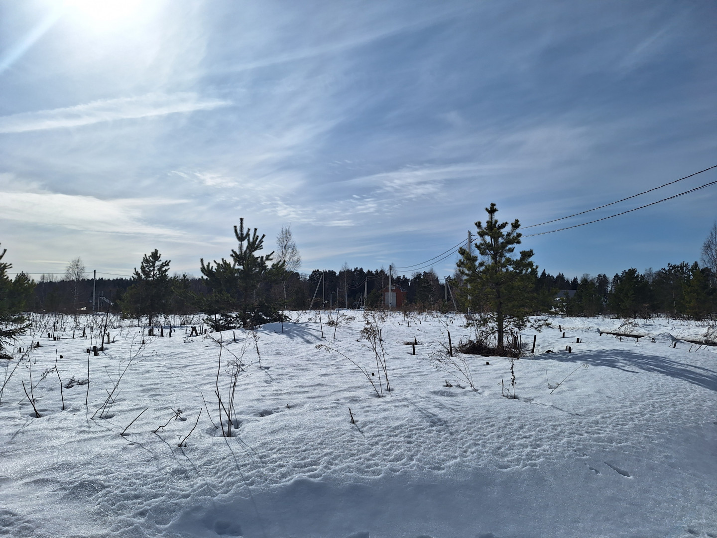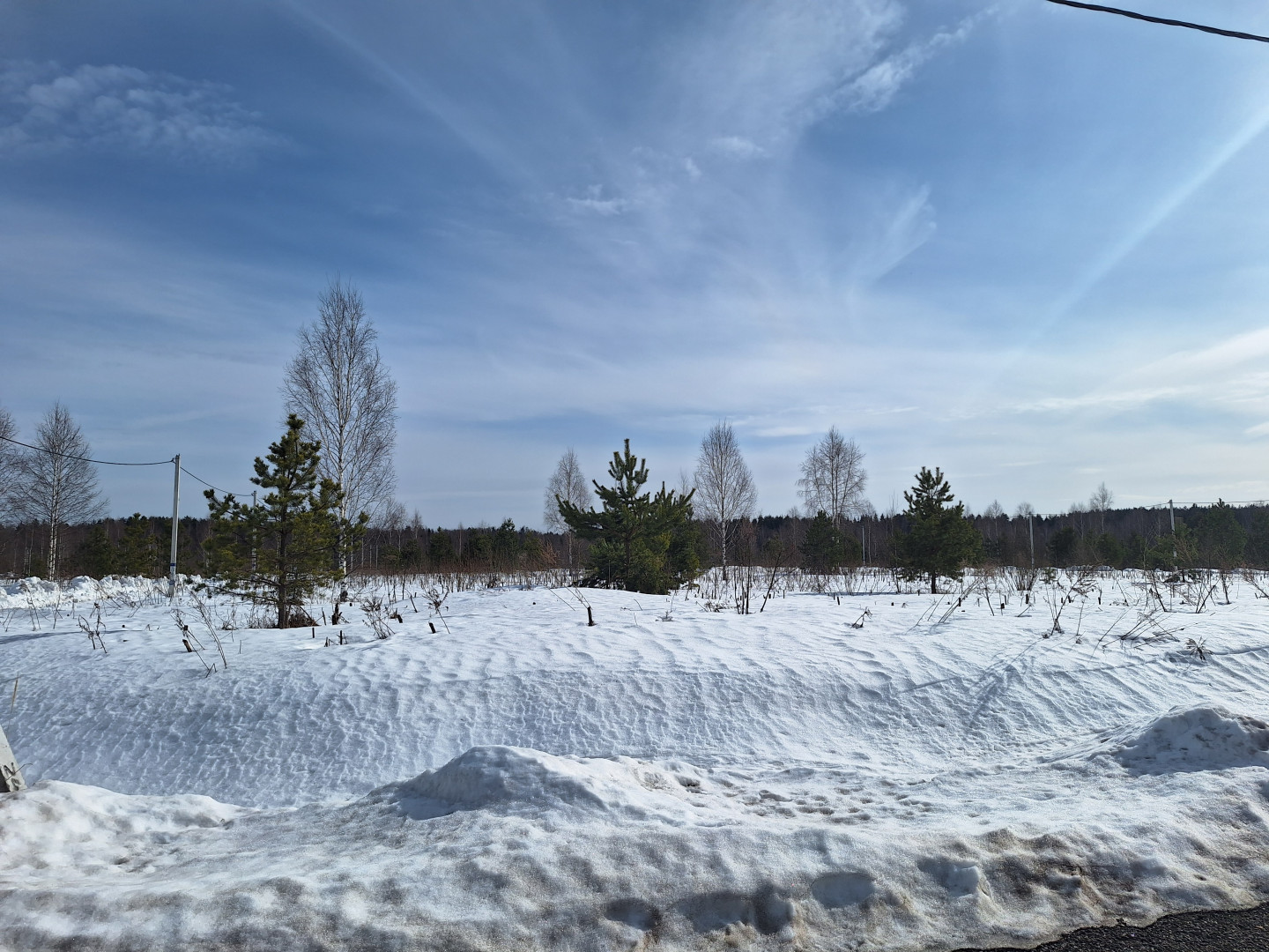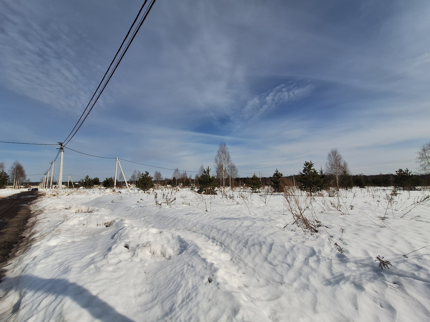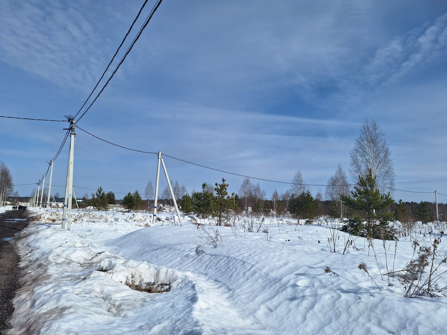 Участок сухой и ровный, удачной прямоугольной формы. Находится в середине посёлка, где идёт активная застройка, некоторые собственники уже построились и живут постоянно. Въезд в посёлок через шлагбaум.