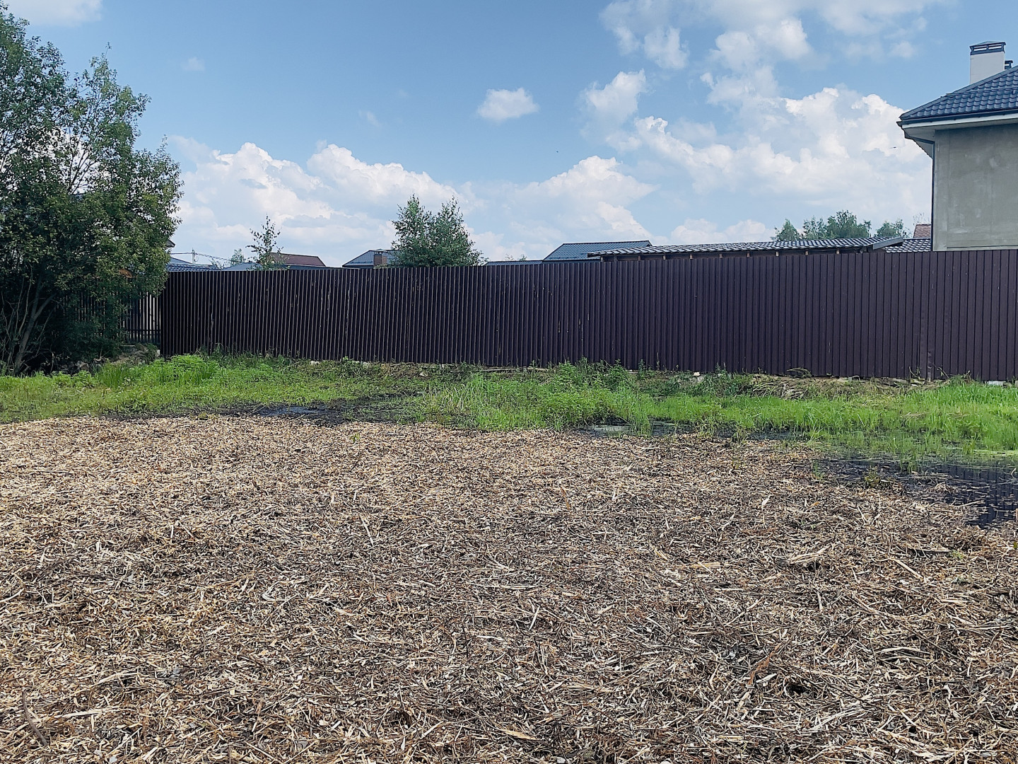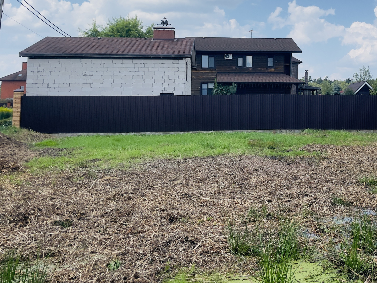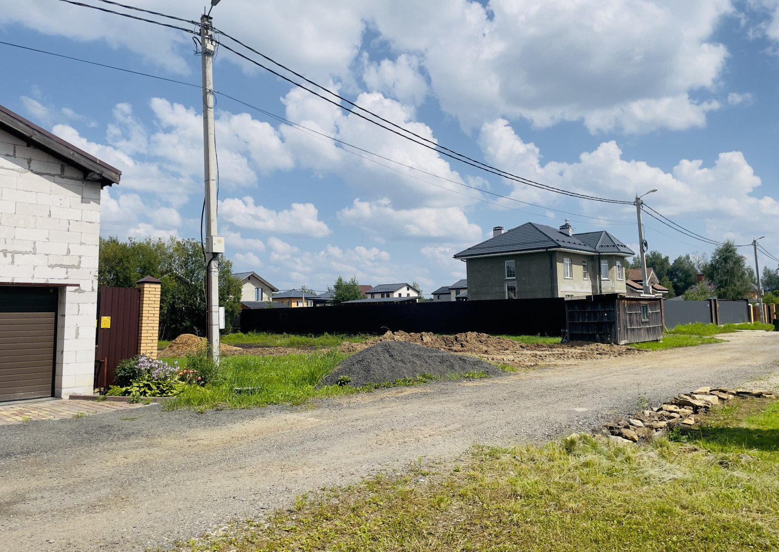 Участок огорожен забором с двух сторон. Газ и электричество (15 КВт) - по границе. Кадастровый номер участка: 50:14:0040341:79. Въезд на участок по асфальтированной дороге, через шлагбаум. Подъезд к участку круглогодичный, дорога в муниципальной собственности, следовательно нет дополнительных затрат на уборку от снега и благоустройство.