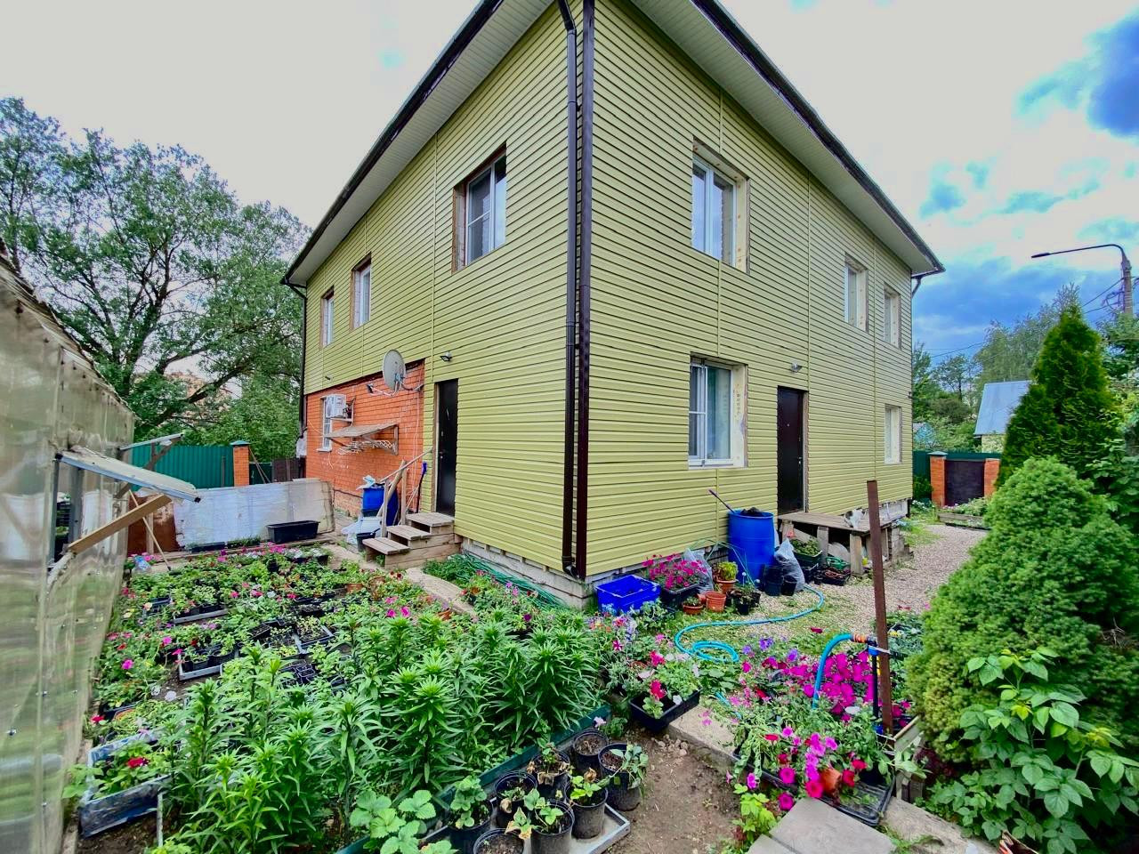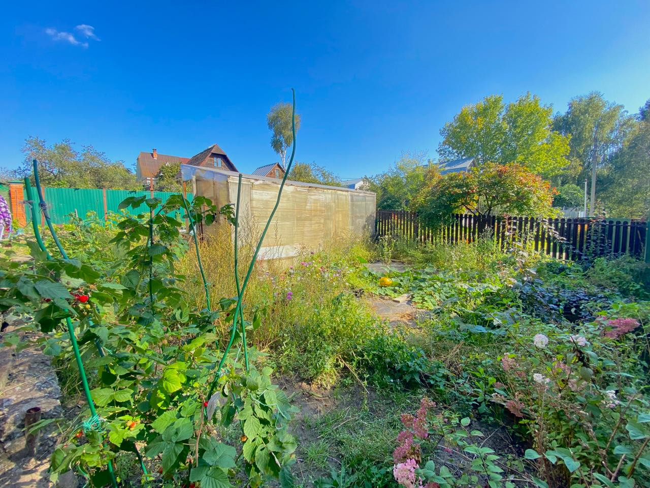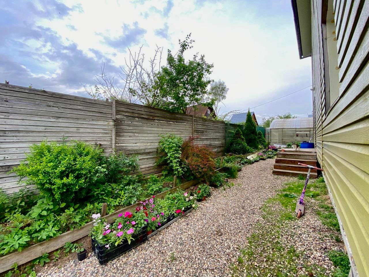 Участок ровный, правильной формы, находится в тупике, к дому ведет асфальтированная дорога, высажено много цветов и кустарников.