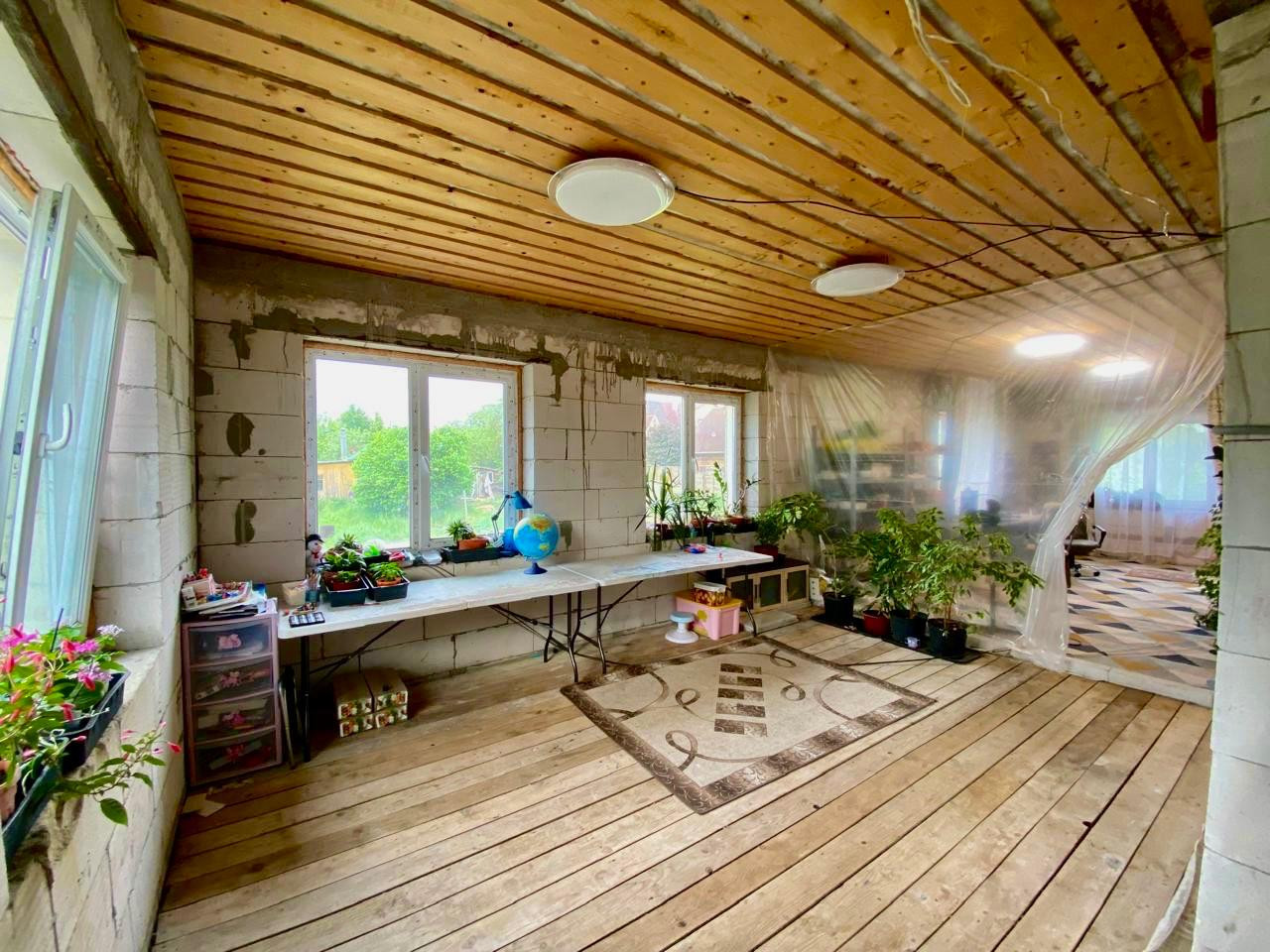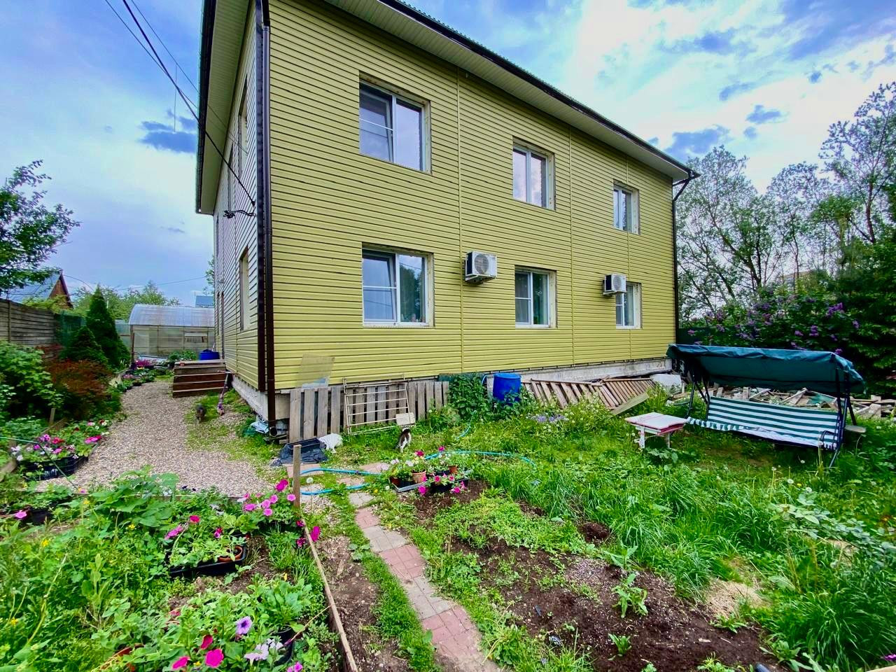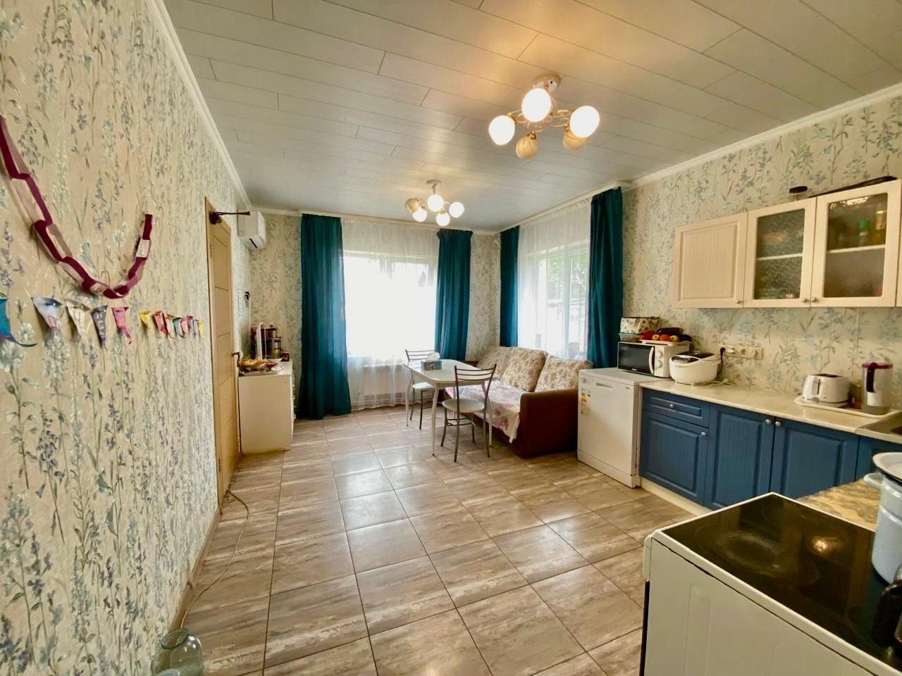 Дом капитальный, стоит на свайно-роствековом фундаменте, стены- из газобетонных блоков с двойной кладкой, кровля- профнастил, оформлен в современном стиле и оборудован всем необходимым для комфортного проживания, построен в 2021 году. У дома два входа, при желании можно разделить на две семьи, внутри уютная кухня-гостиная, просторные спальни, большие холлы, оборудованная кухня и большое подвальное помещение. Дом предполагает круглогодичное проживание, имеется два разных отопительных котла ( твердотопливный- с возможностью переключения на газ) и электрический. Газ- по границе, имеется вся документация на ввод. Отопление разведено по 1 этажу, также полы, где уложена плитка - с подогревом. В доме остается вся мебель, три кондиционера, посудомоечная машина, стиральная машина, кроме телевизоров, компьютера, двух холодильников и двух тумбочек.