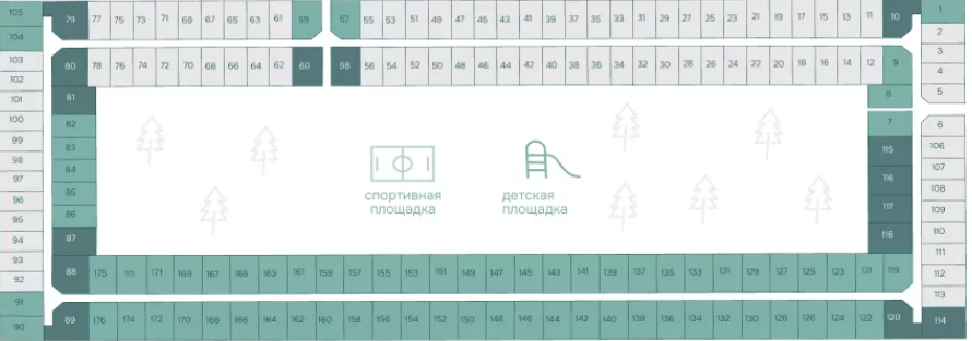 На территории запланированы: детская игровая, спортивные площадки для взрослых, зоны отдыха.