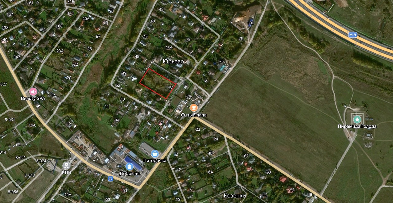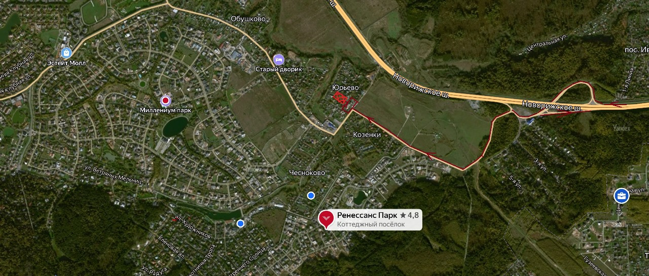 ПОСЕЛОК: Деревня Юрьево находится в 19 км. от МКАД по Новорижскому шоссе. Деревня находится в окружении элитных поселков: Резиденция Бенилюкс, Ренессанс Парк и Миллениум Парк, Шервуд и т.д. Все дороги в деревне асфальтированные, установлено уличное освещение.