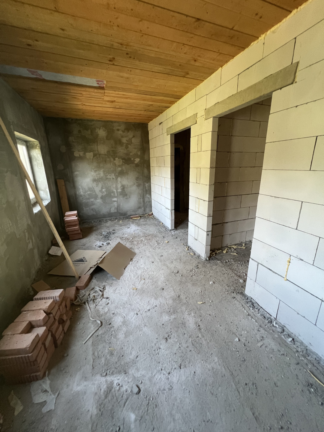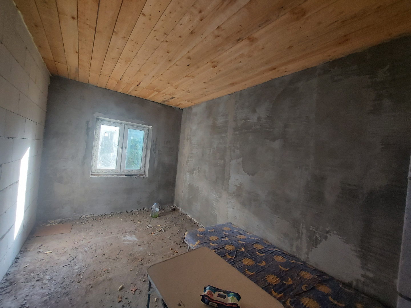 Стены: блоки, снаружи стены обшиты пеноплексом 5 см. и оштукатурены